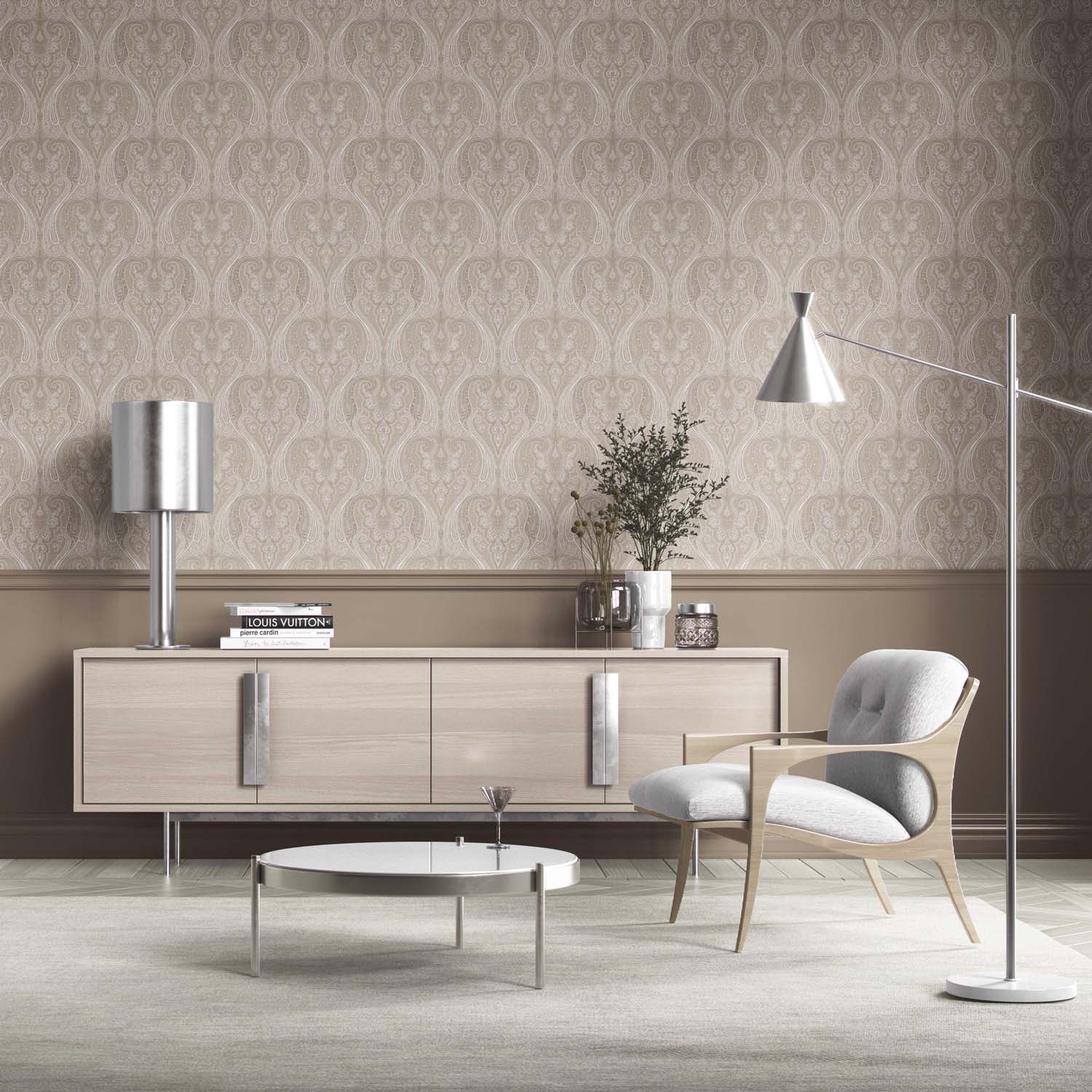 ‘Nilva’ Neutral Paisley Floral/ Damask Patterned Wallpaper (Brown/ Beige)