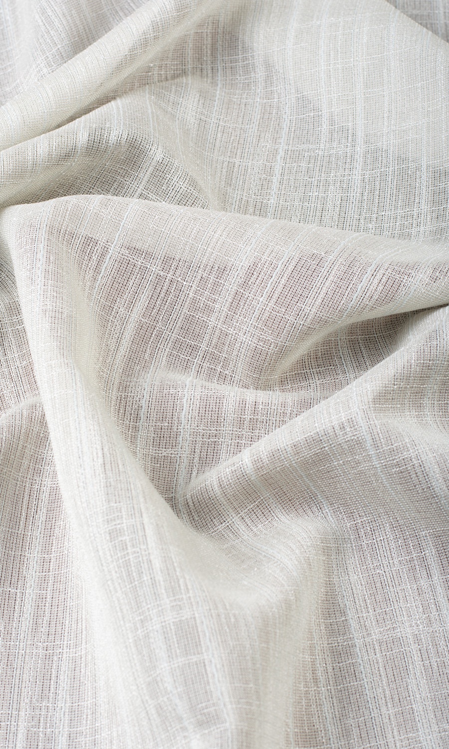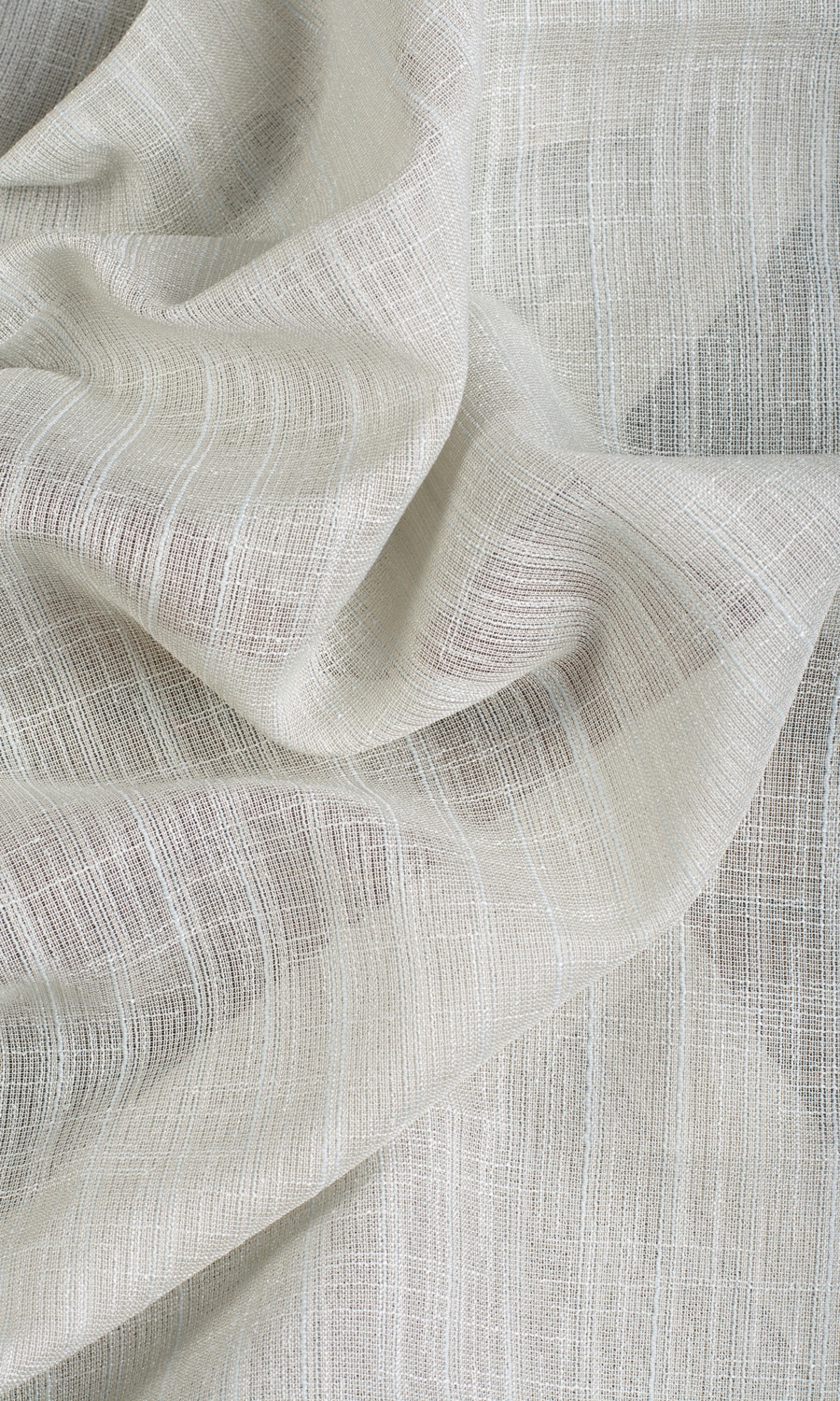 A pale grey sheer with just a hint of green for a home that looks to upgrade its ambience with a serene color and rich texture. Nolara is an alluring fabric with crosshatch patterns intertwined into its weave, carrying the promise of beautiful dappled shadows. Let light script a lilting song of fleeting shadows and breezy whispers with this gossamer beauty.