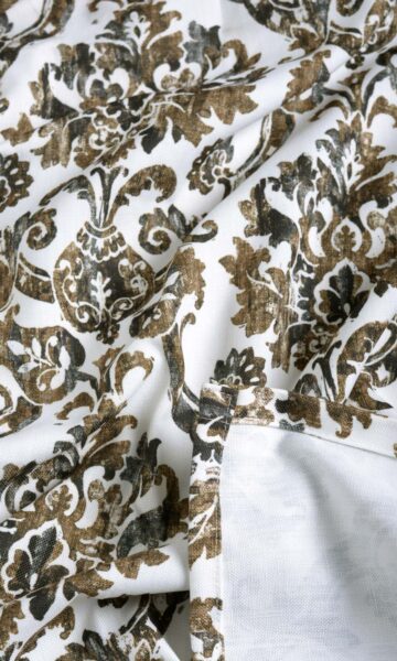 If intricate detailing moves you, you can?t walk past this jaw-dropping damask fabric! A generous helping of peanut brown and tinges of black and grey make sure that this window treatment will be a conversation starter for your visitors. Classically-styled extra-large living rooms and open-plan homes stand to benefit immensely from such bold-patterned drapes and roman shades.