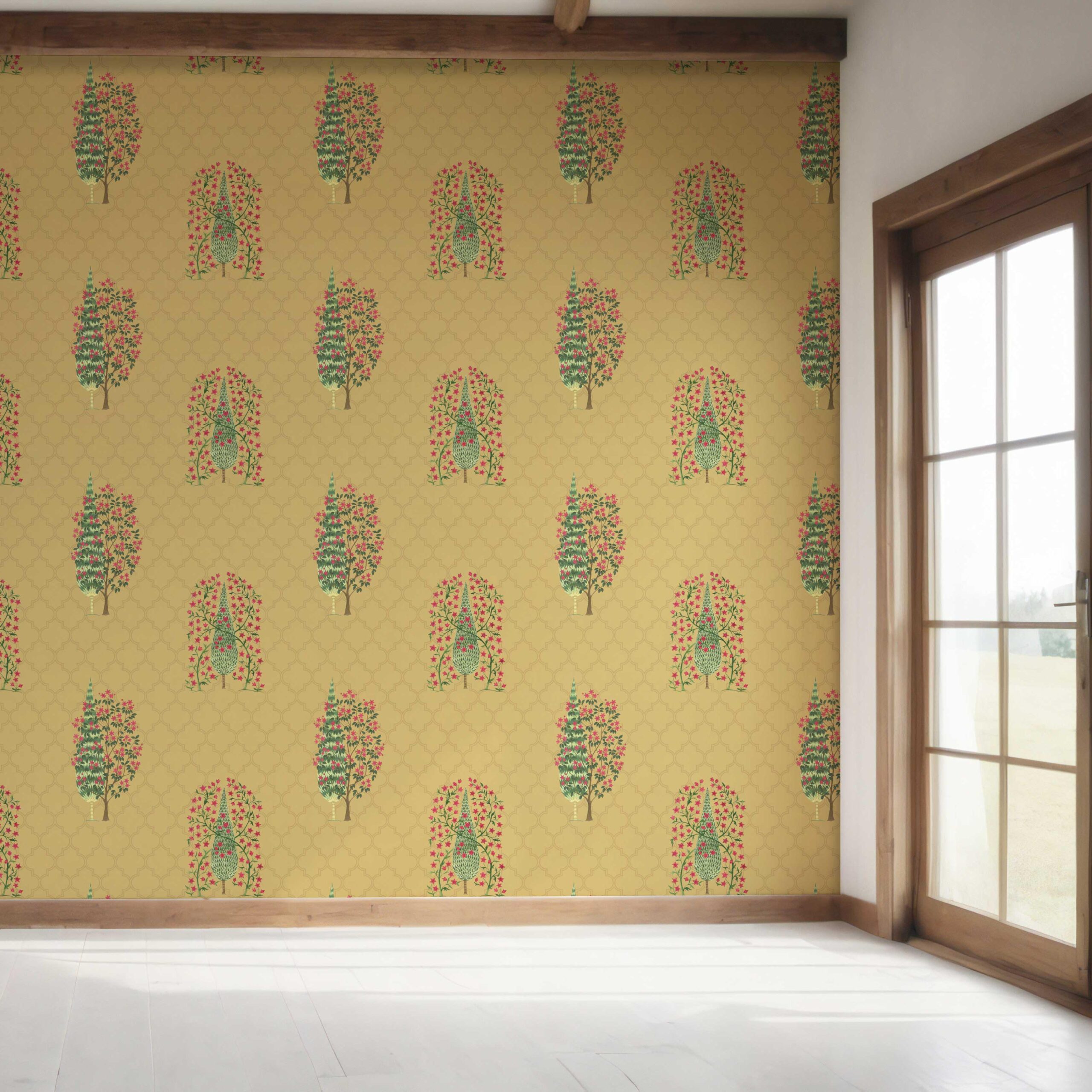 NON-PASTED: ‘Oakwood’ is an unpasted wallpaper installed by applying adhesive paste (not provided by us, but easy to source) to the wall. While peel-and-stick papers do not leave much room to change the paper’s position once you start applying it, the traditional, non-pasted application is more forgiving, allowing for better positioning when matching patterns.