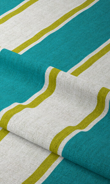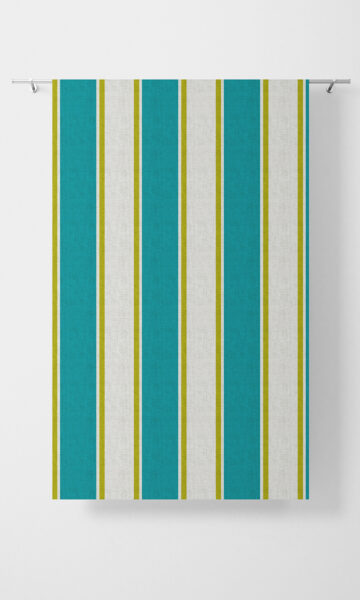 Featuring the most cheerful palette, this stunning fabric is made for cozy kitchens and lively dining rooms. It boasts a trend-right colorway of pacific blue, apple green and linen white, complemented by a bold pattern of wide and slender repeating stripes. Its blue lends it a pop of pizzazz, but not so much to detract from other elements at play in your decor. Its designer flair makes it suited to upscale looks as well as relaxed, contemporary settings.?
