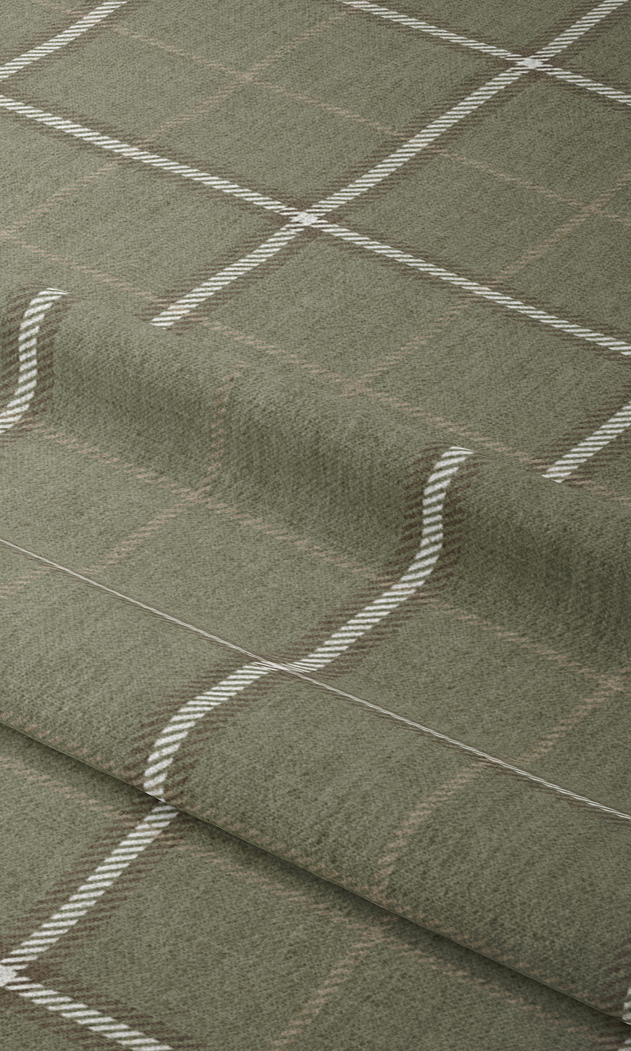 This rich grand scale check is a celebration of the classic. Inspired by traditional plaid check, but brought up to date with its trend right palette of olive green, deep brown and white. Woven on a rich, herringbone weave base, this is the fabric to bring glamour in an instant.?