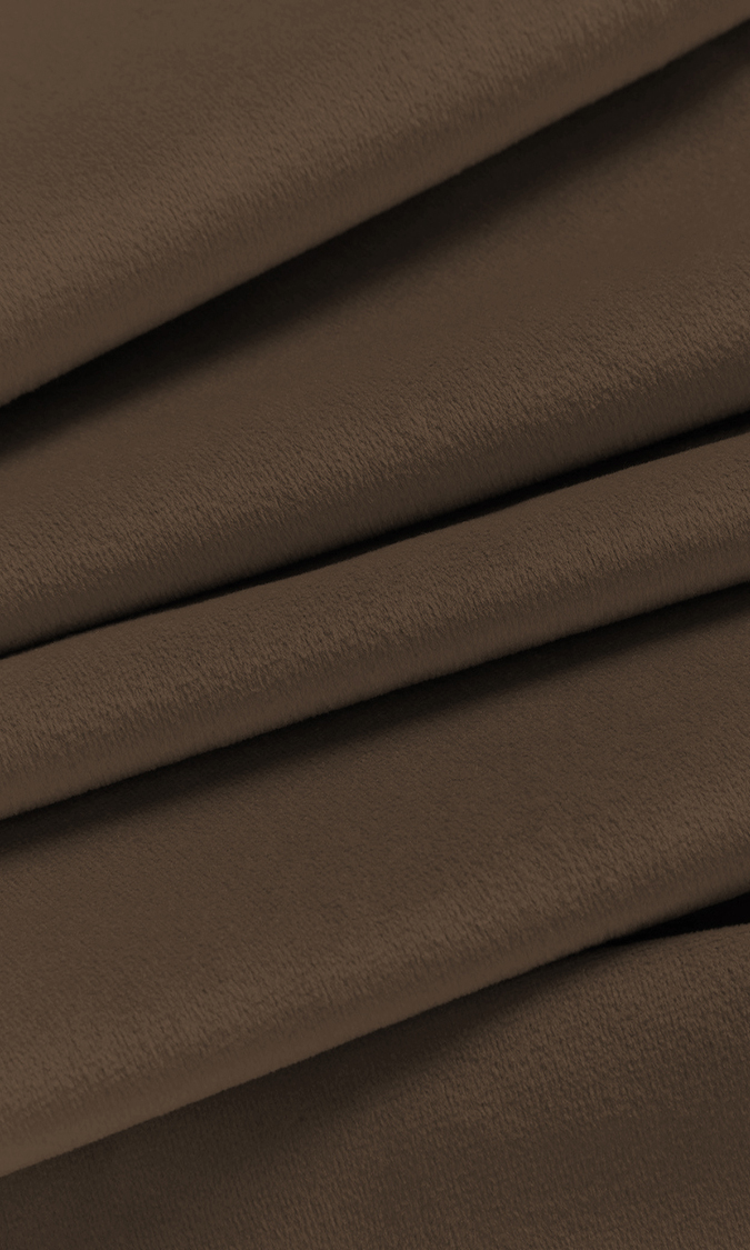 Looking for window treatments that echo the deep brown of your wooden joinery? This velvet drapery fabric featuring a rich coffee brown tone can meet this specific color goal but also blend with almost any color palette under the sun. For a design aesthetic that reveres texture above shapes and colors, nothing can be more gratifying than the plush piled velvets. Enjoy watching light sketching chromatic depictions on the rich naps of your shades and drapes.