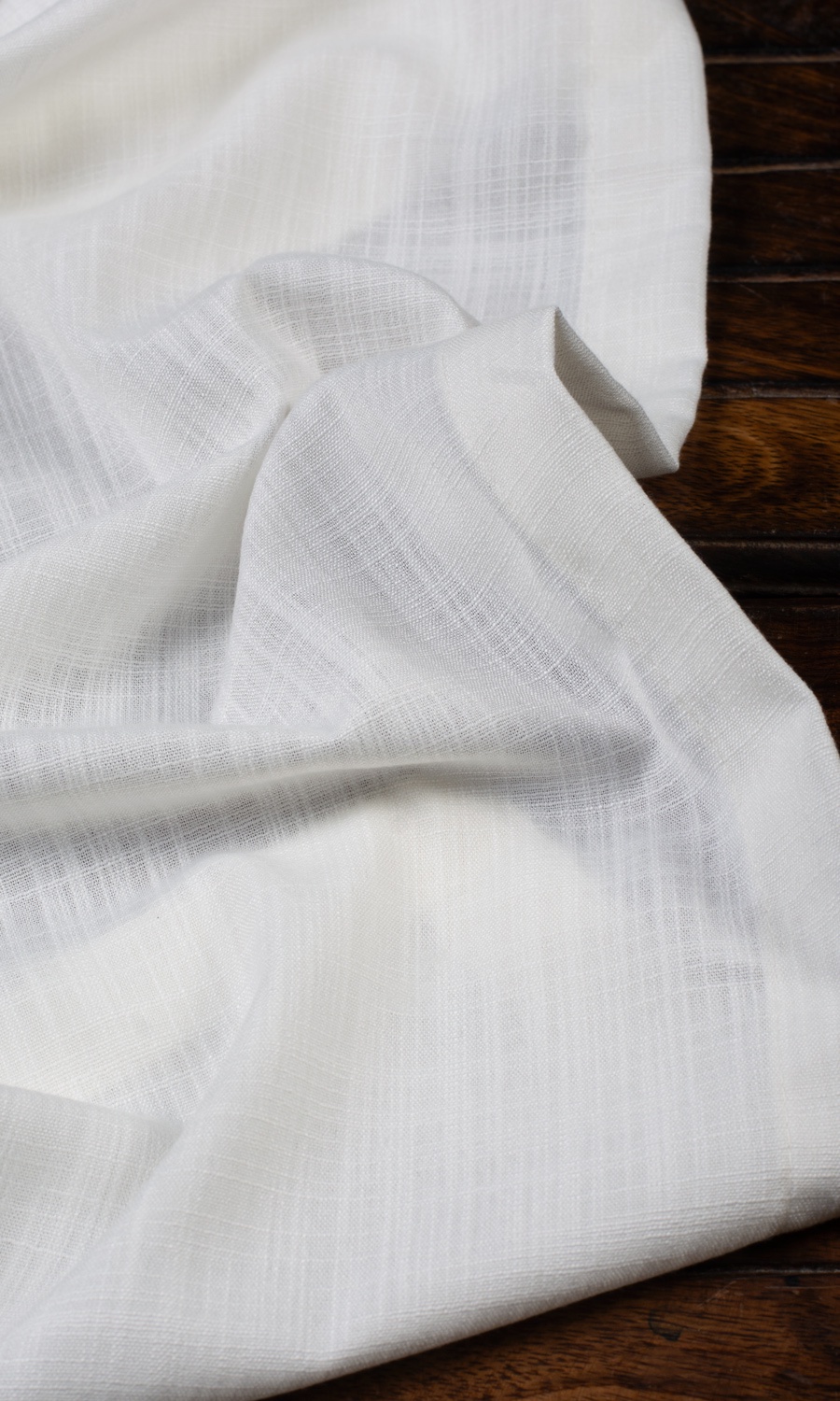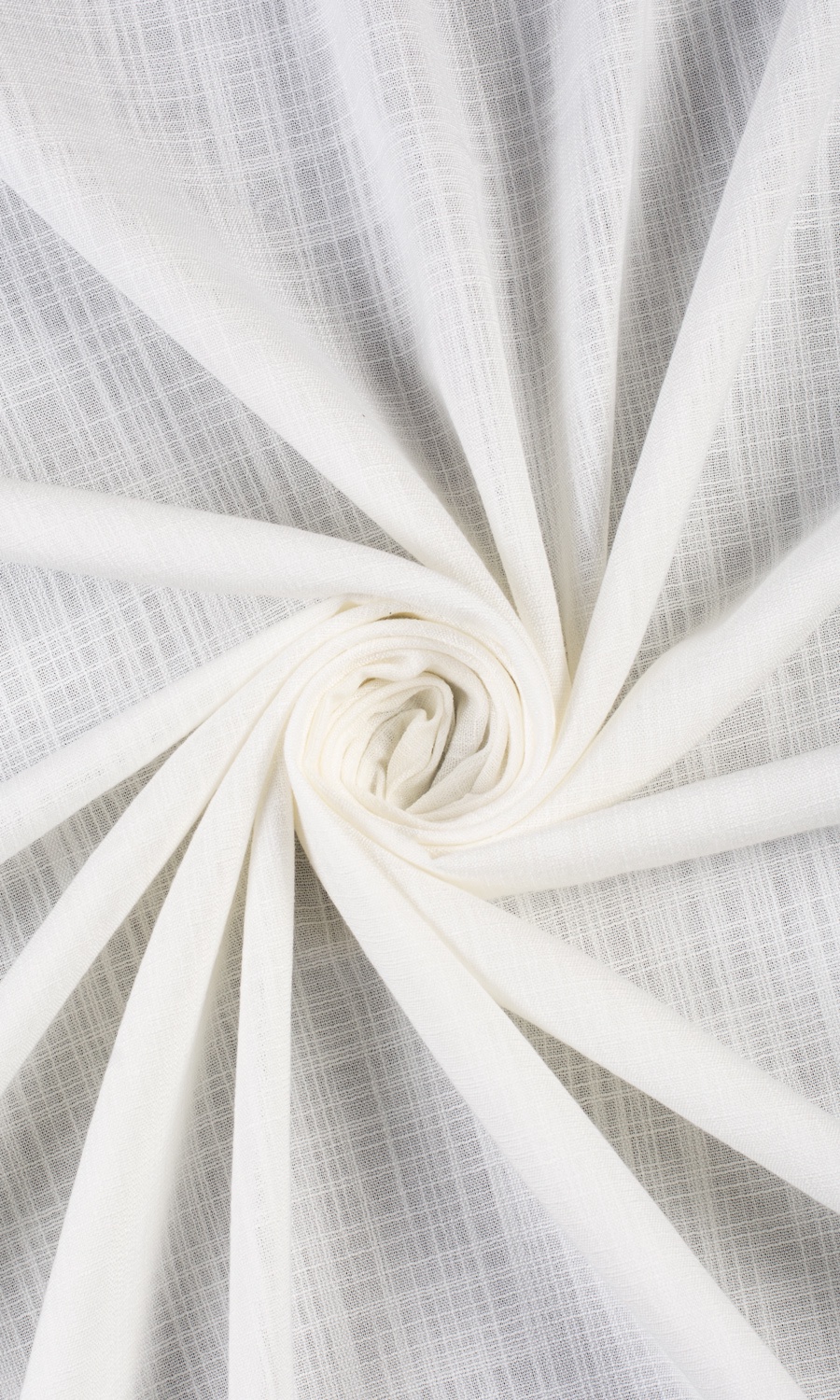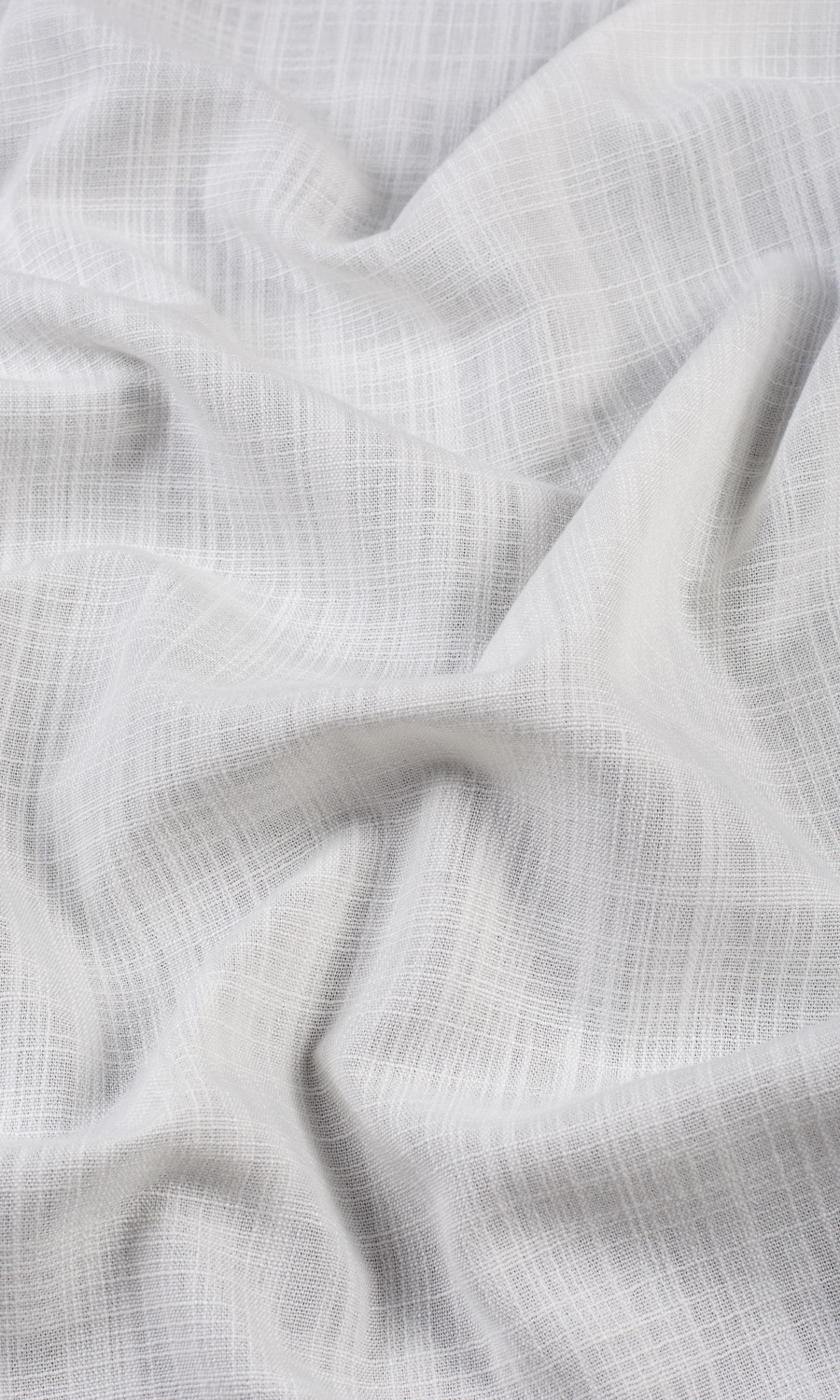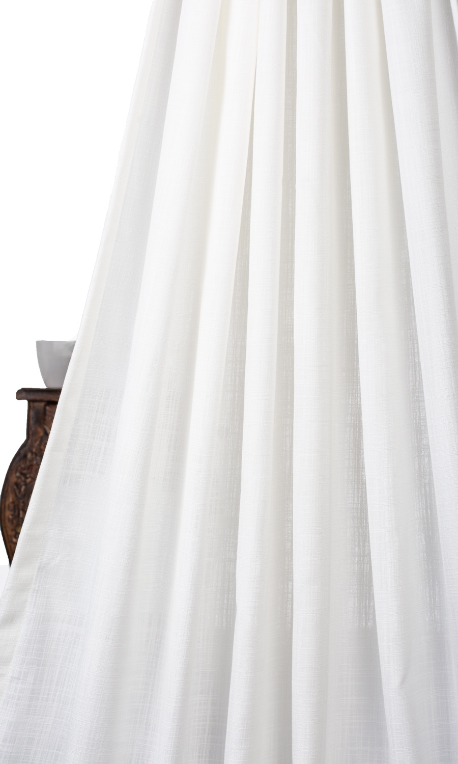 A plain white semi-sheer that transforms simplicity into pure sophistication, wrapping your space in soft, luminous beauty. This gauzy fabric filters light with a gentle touch, creating a serene, airy atmosphere that feels effortlessly elegant. Welcome light and ensure daytime privacy with this ethereal veil for your windows. When lined, this fabric can also provide flawless privacy. ‘Marjoram’ is nothing short of a true celebration, a statement of timeless style, delicate texture, and a whisper of grace for your home.