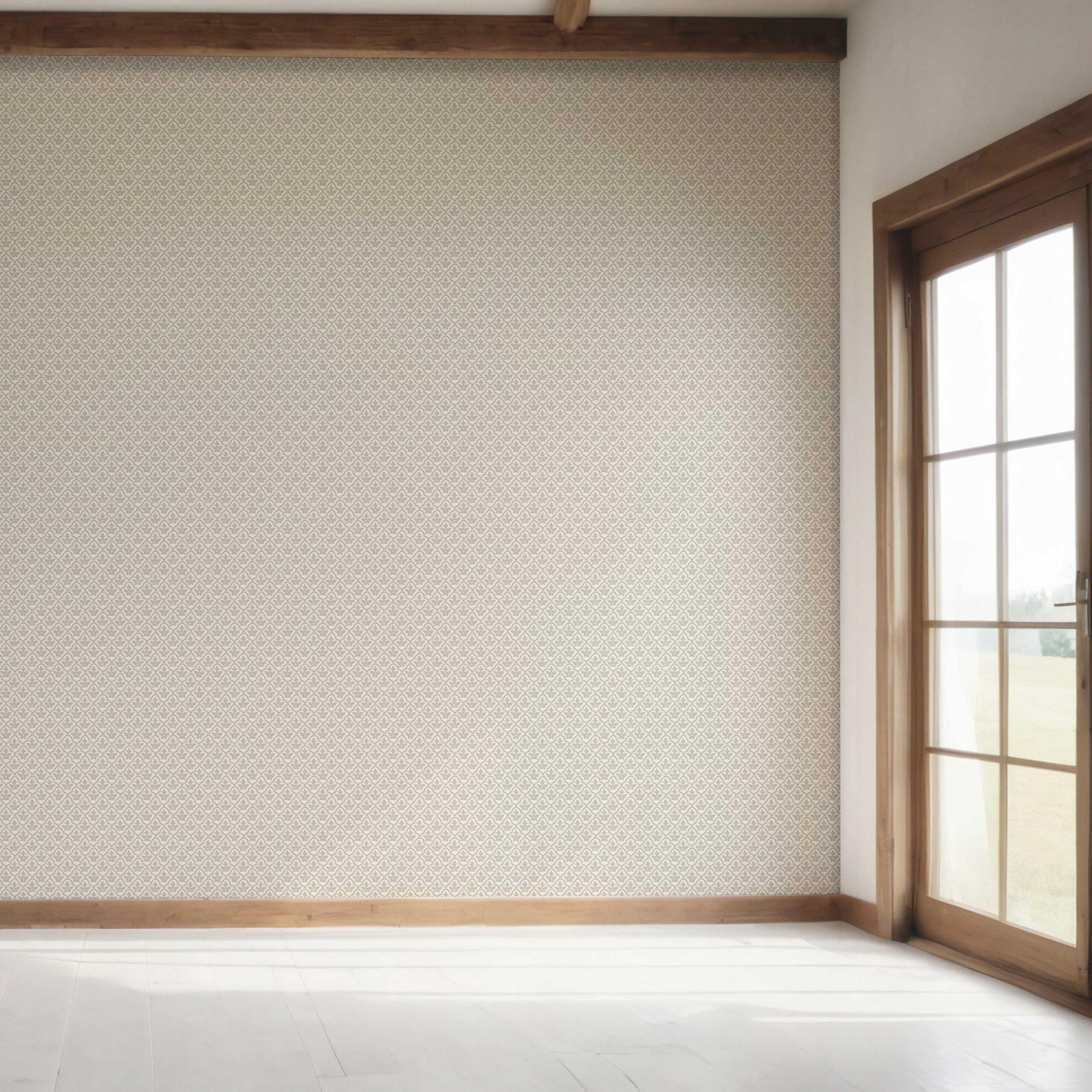 ‘Orion’ Neutral-Toned Small Floral Lattice Wallpaper (Warm Gray/ Greige)