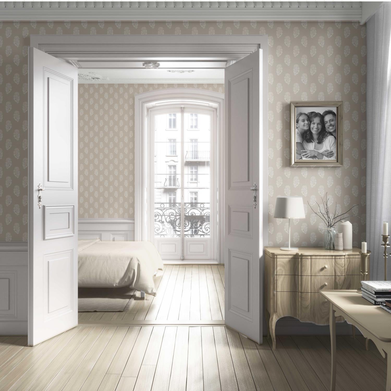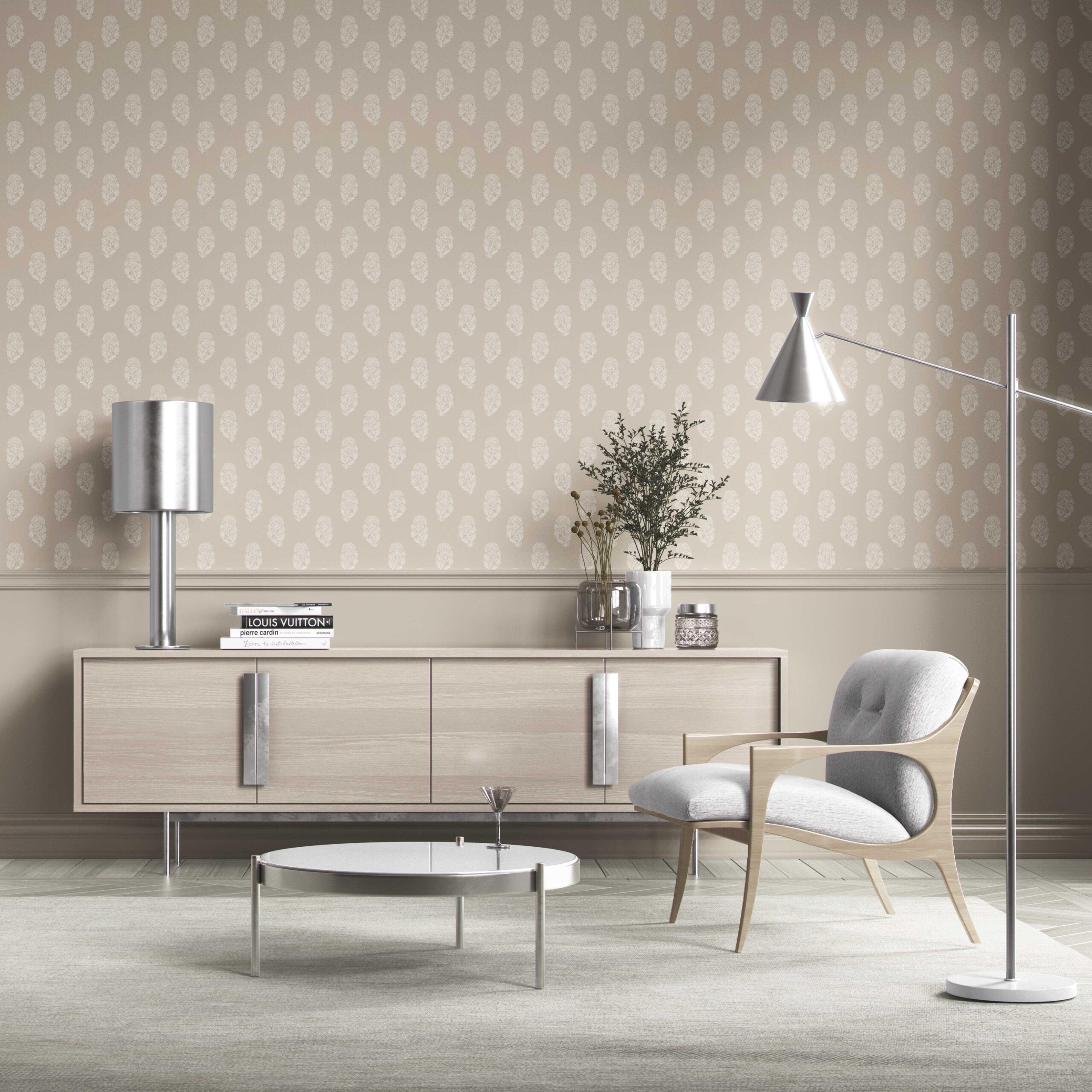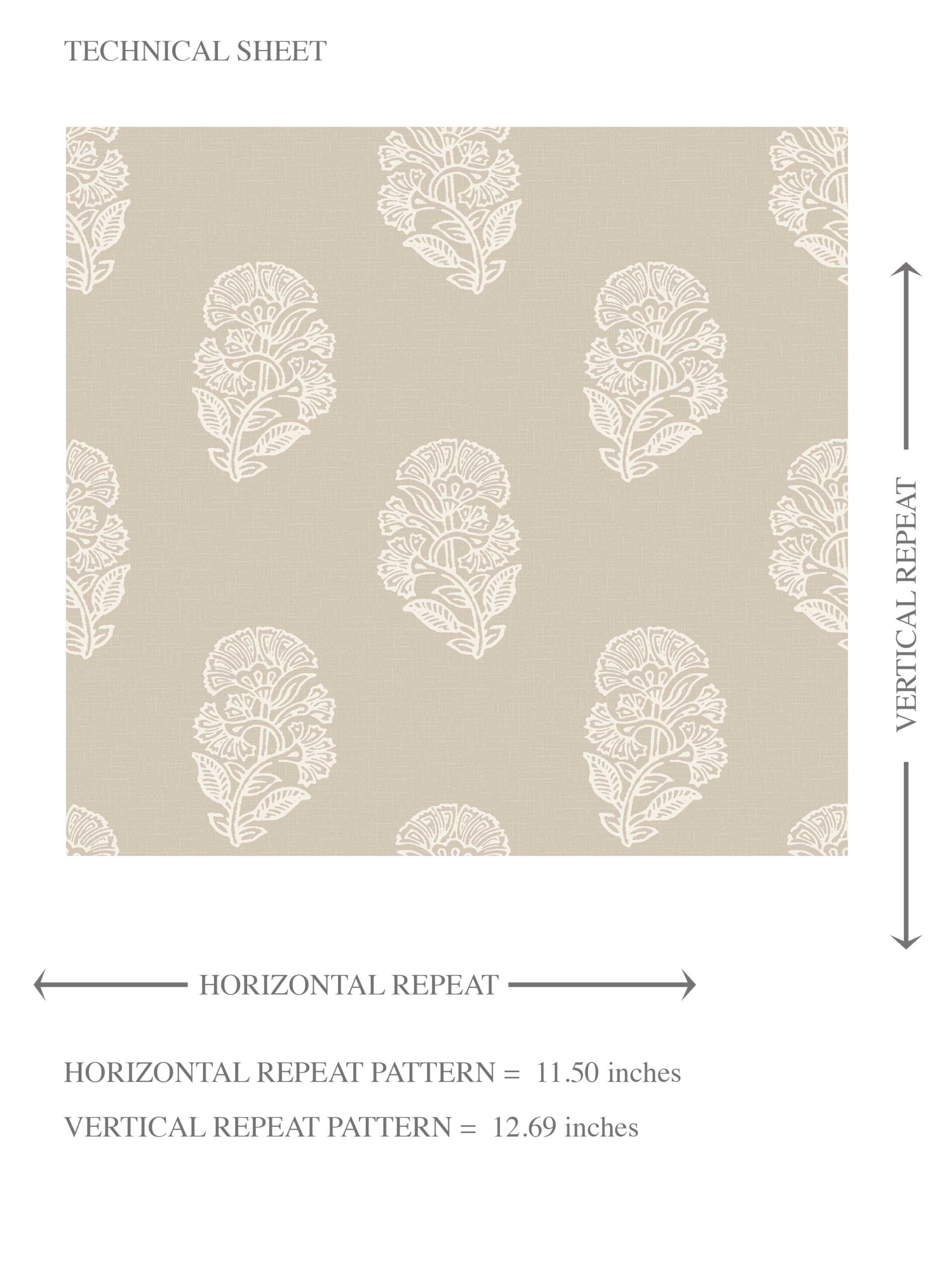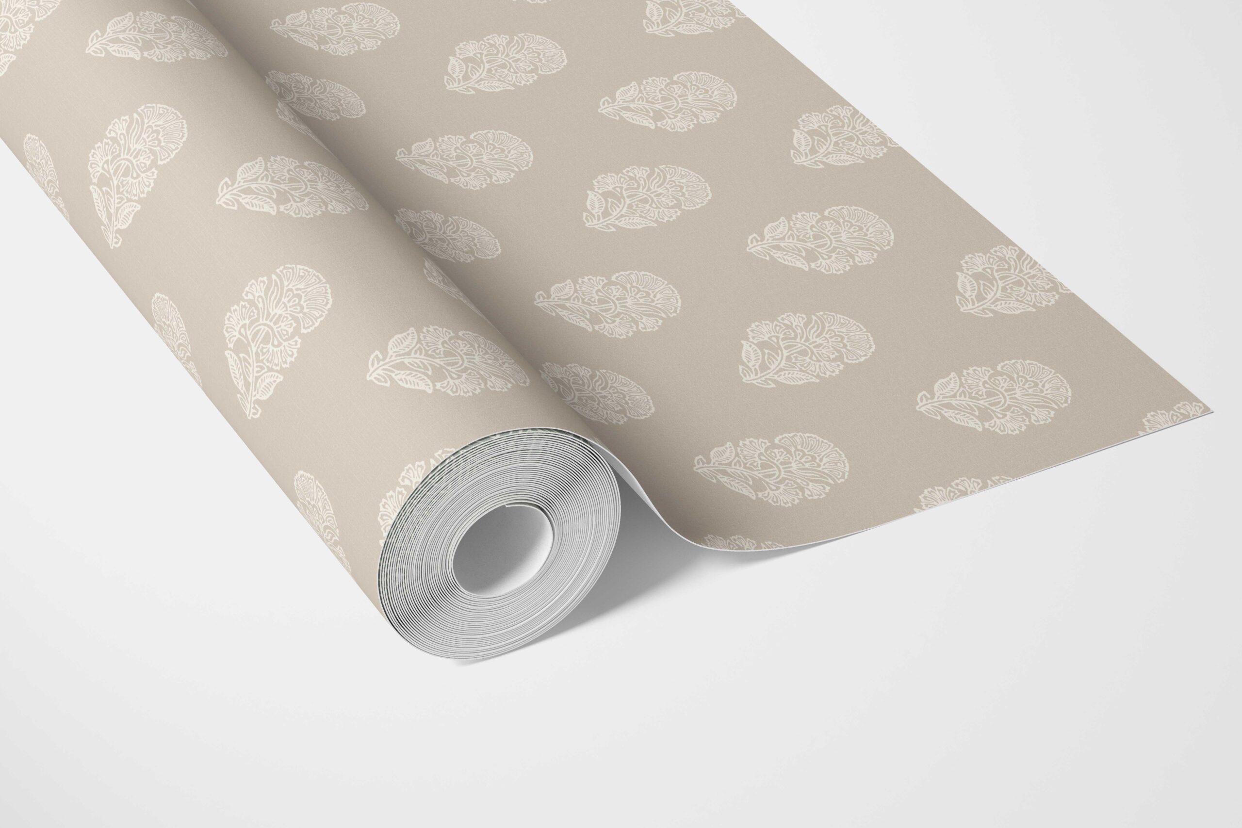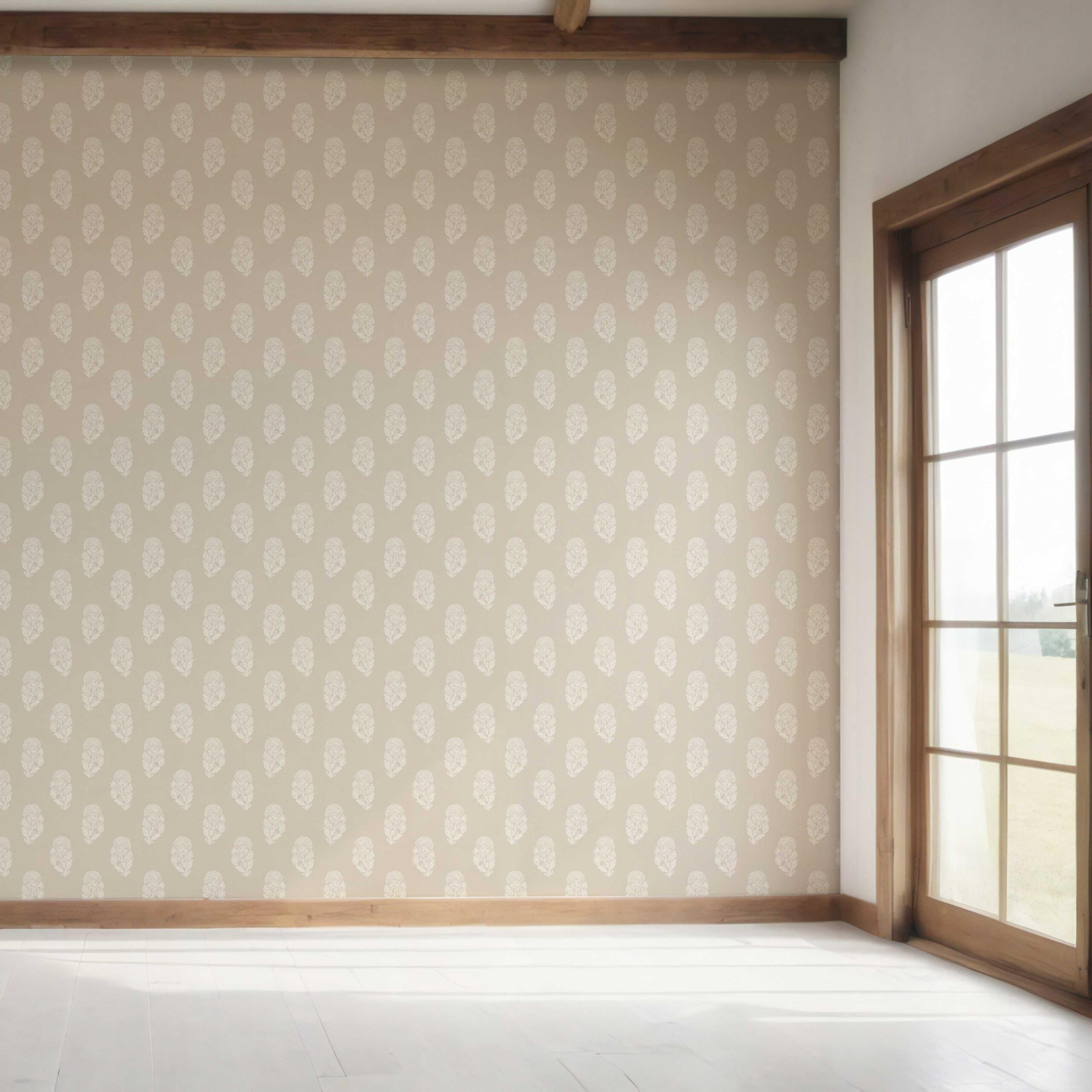 ‘Ouro’ Neutral Botanical/ Floral Block Print Wallpaper (Beige/ White)