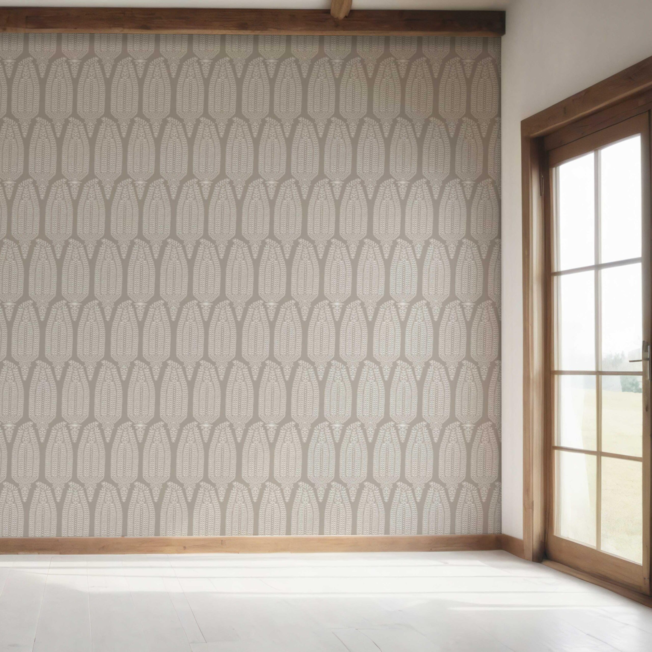 NON-PASTED: ‘Oyster Oak’ is an unpasted wallpaper installed by applying adhesive paste (not provided by us, but easy to source) to the wall. While peel-and-stick papers do not leave much room to change the paper’s position once you start applying it, the traditional, non-pasted application is more forgiving, allowing for better positioning when matching patterns.
