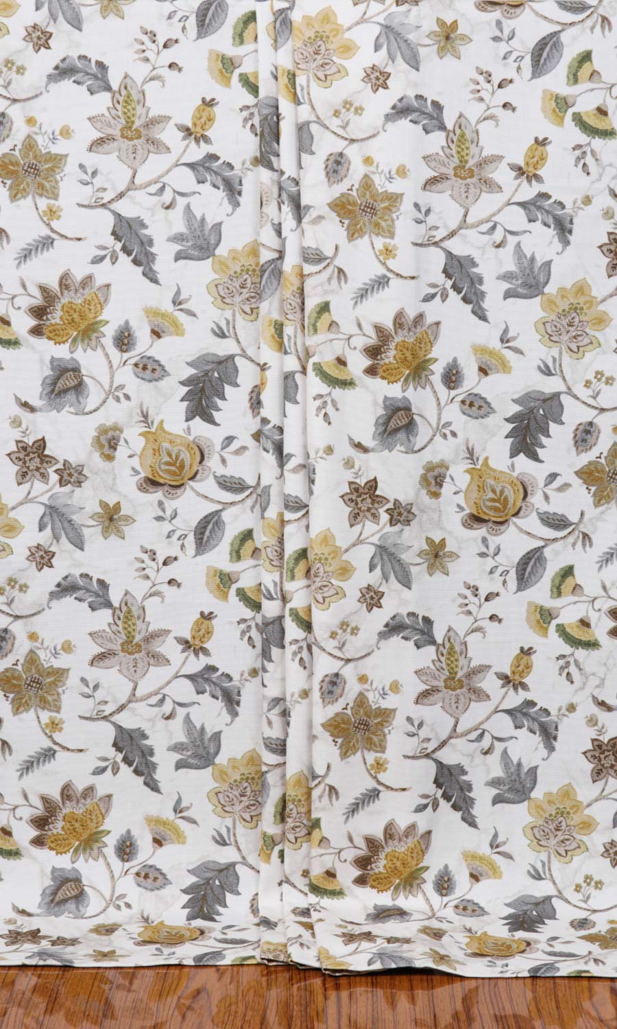 ‘Palki’ Floral Cotton Made-to-Measure Curtains (Grey/ Yellow)