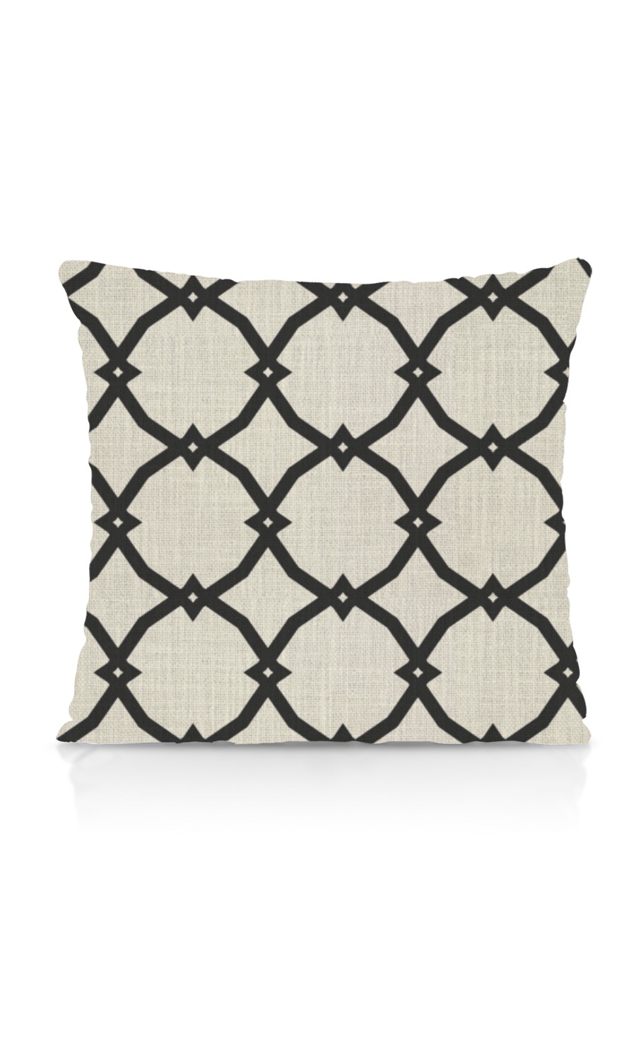 Update your decor with this flatweave fabric that features an alternative take on the classic quatrefoil pattern. Its bold patterning is sure to refresh the look of any space and add a pop of zest to your decor. Its trend-right color combination of black and warm white brims with timeless elegance and is sure to pair easily with other color combinations, helping you create a unique decorative look for any room.