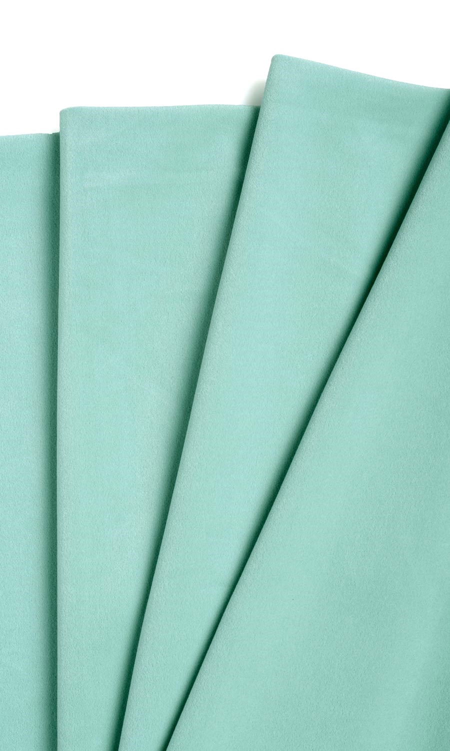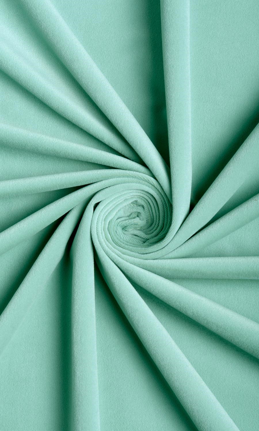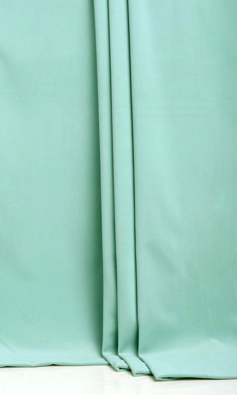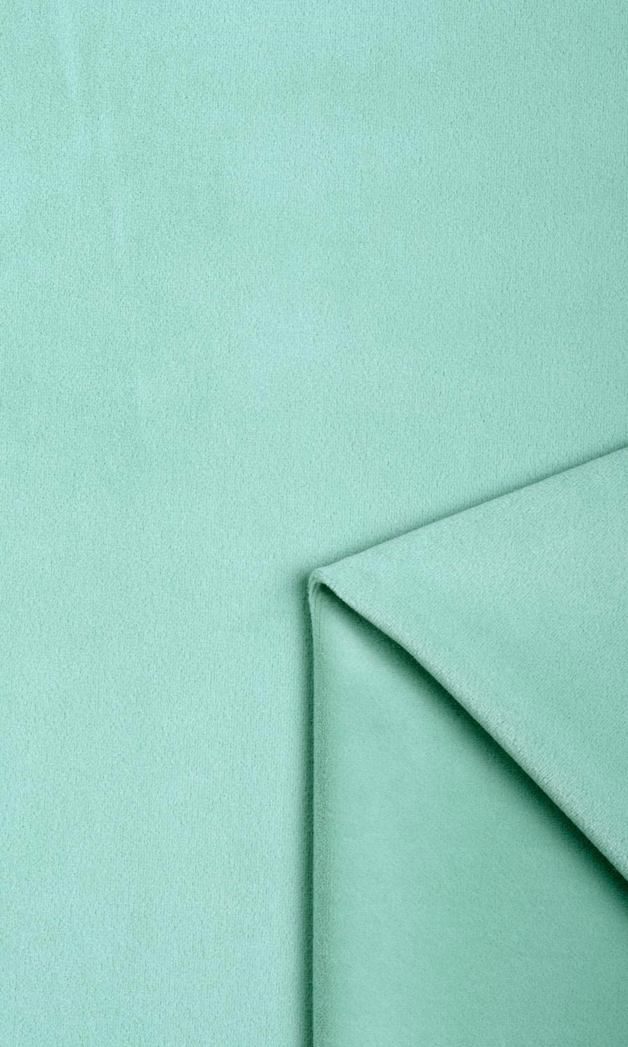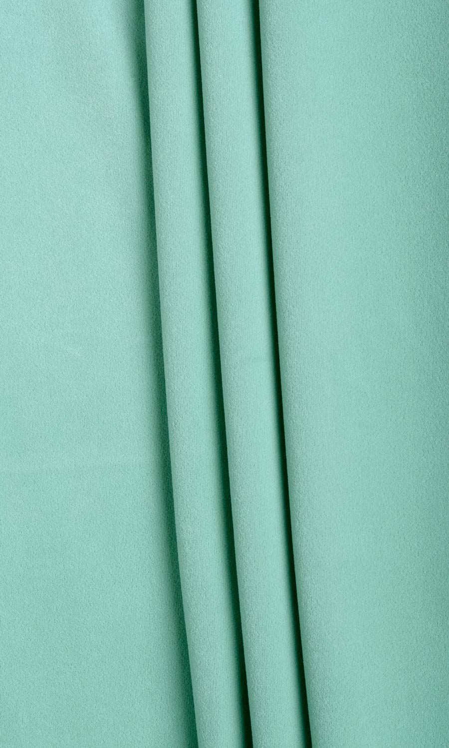 Rejuvenate your space with the freshness of mint. Window treatments in this bluish-green velvet fabric promise a treat to the eye, an organic nature-inspired touch. As light weaves a thousand tales on the plush naps of this luxurious velvet, green exudes the energy and coolness of verdant valleys. This plain fabric is best dressed in pinch pleated drapes and relaxed roman shades benefitting from the architectural construction of these styles.