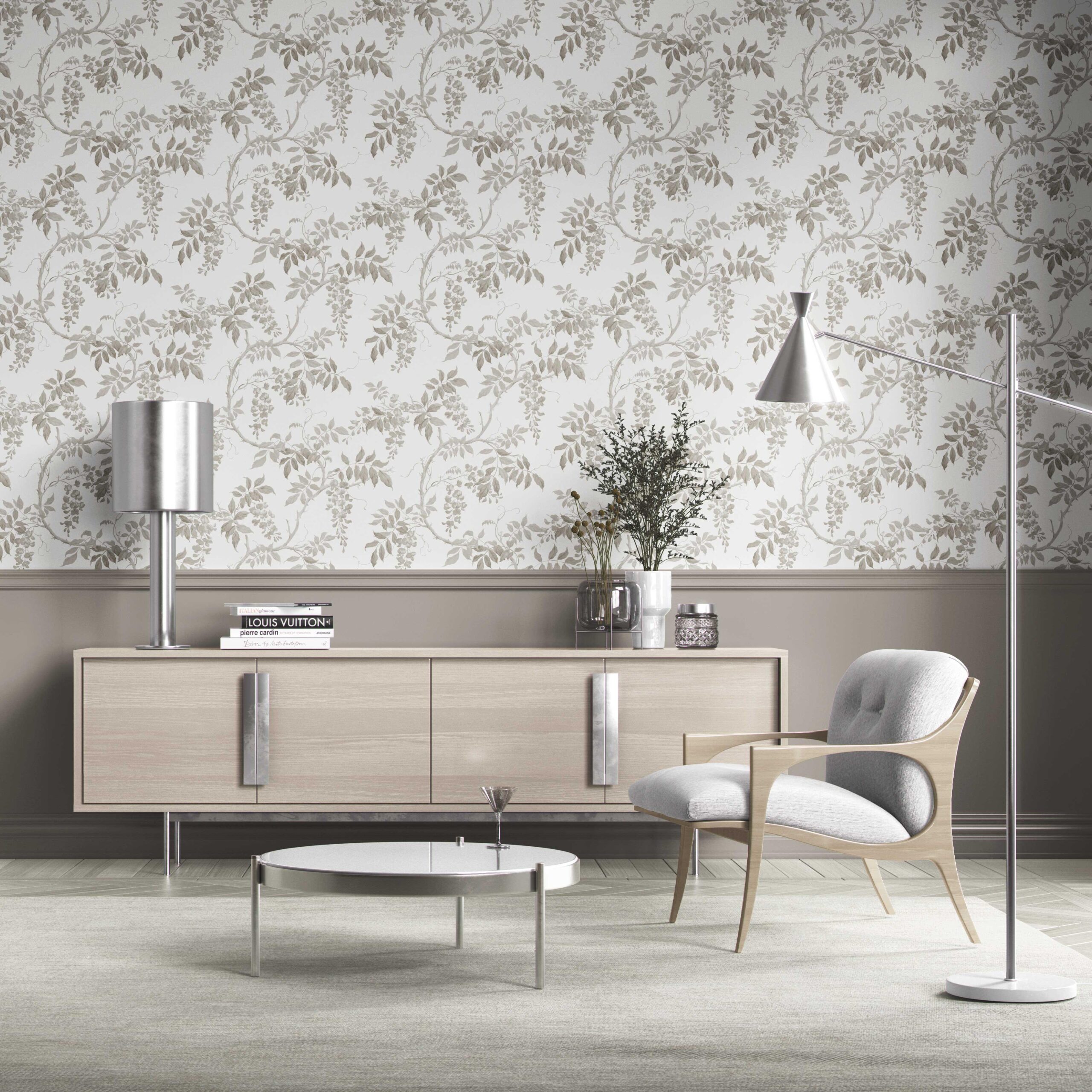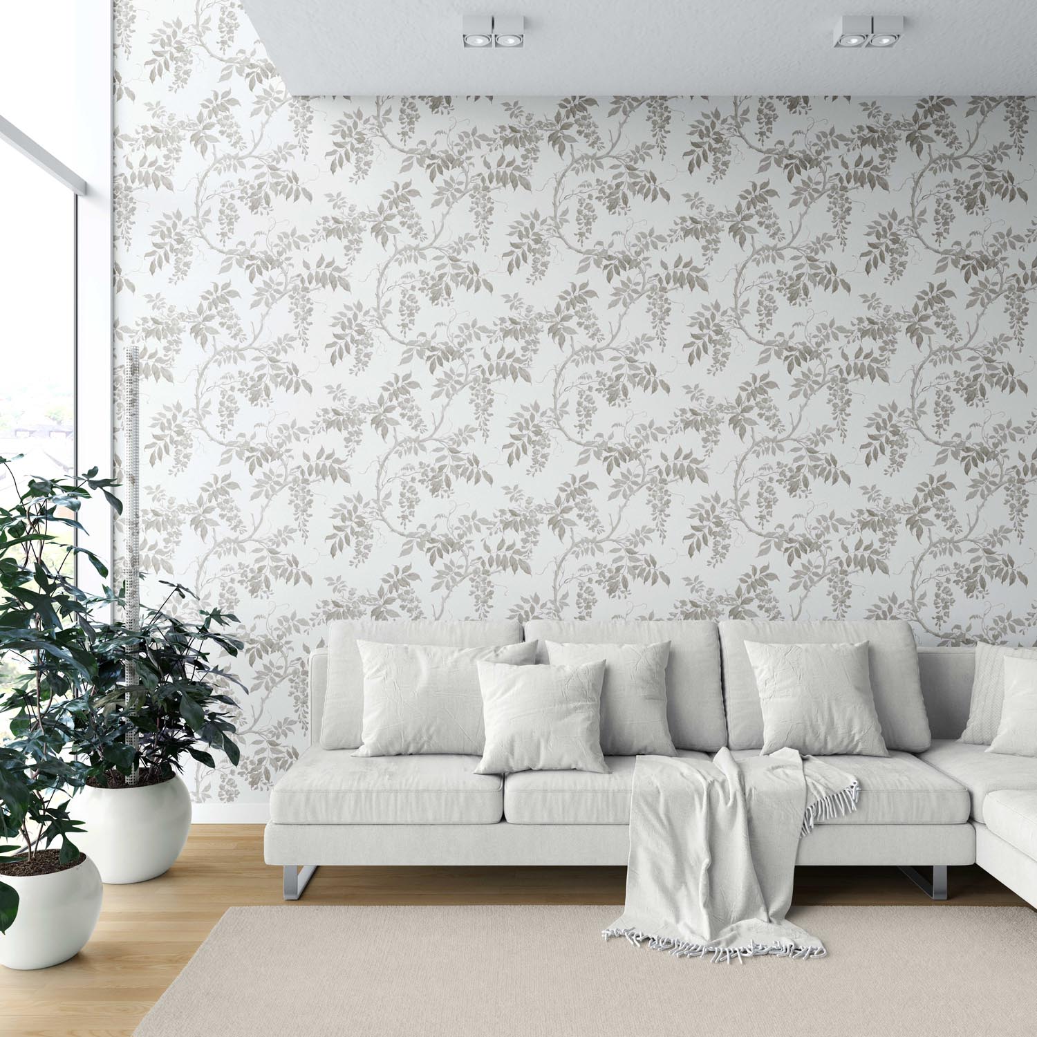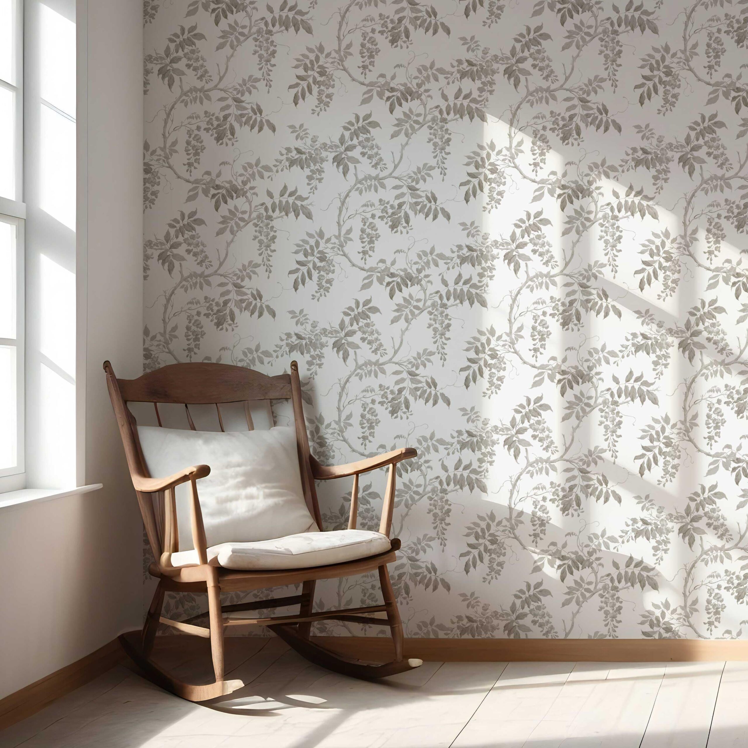‘Pebble Ash’ Neutral Floral Vine/ Botanical Wallpaper (Gray/ Greige/ White/ Taupe)