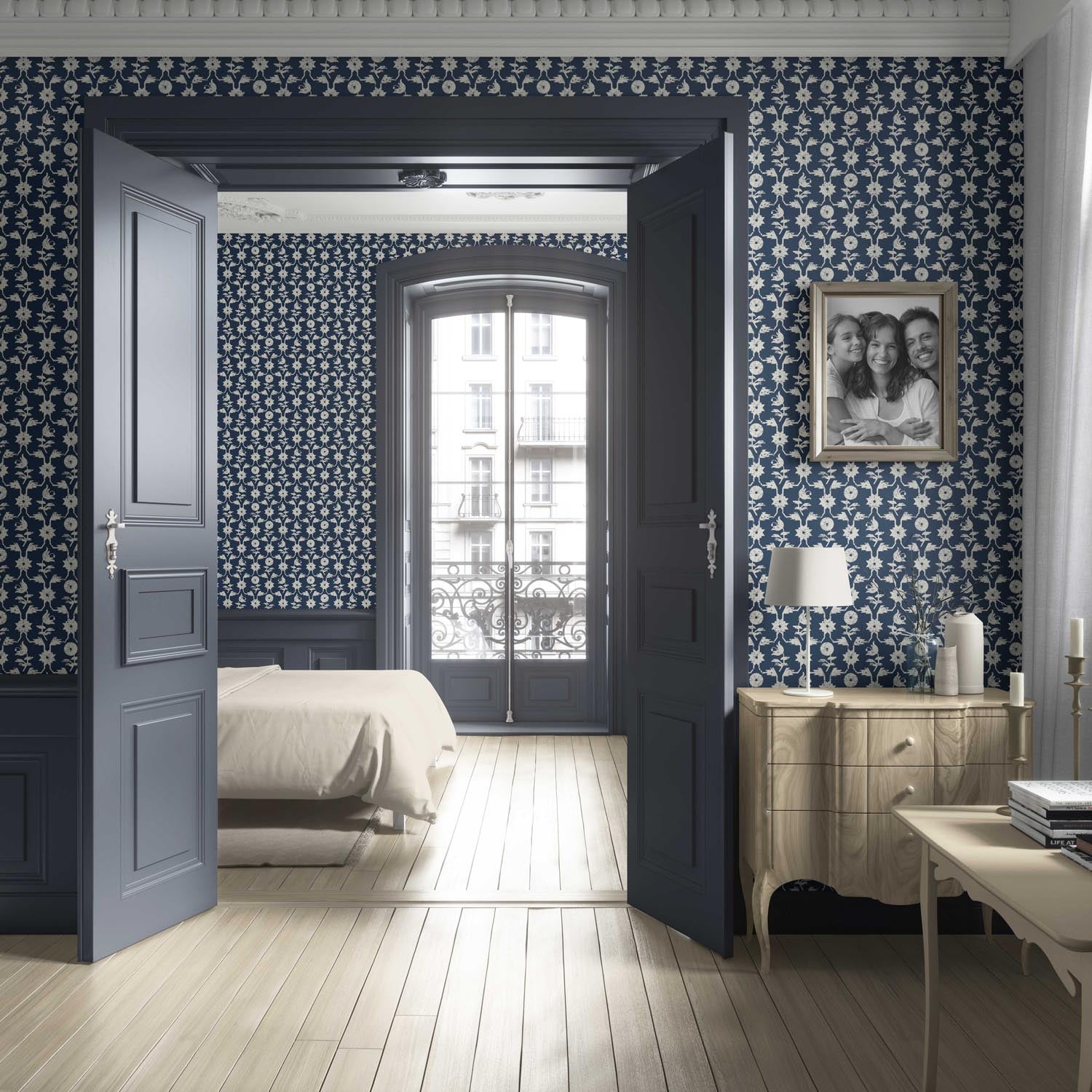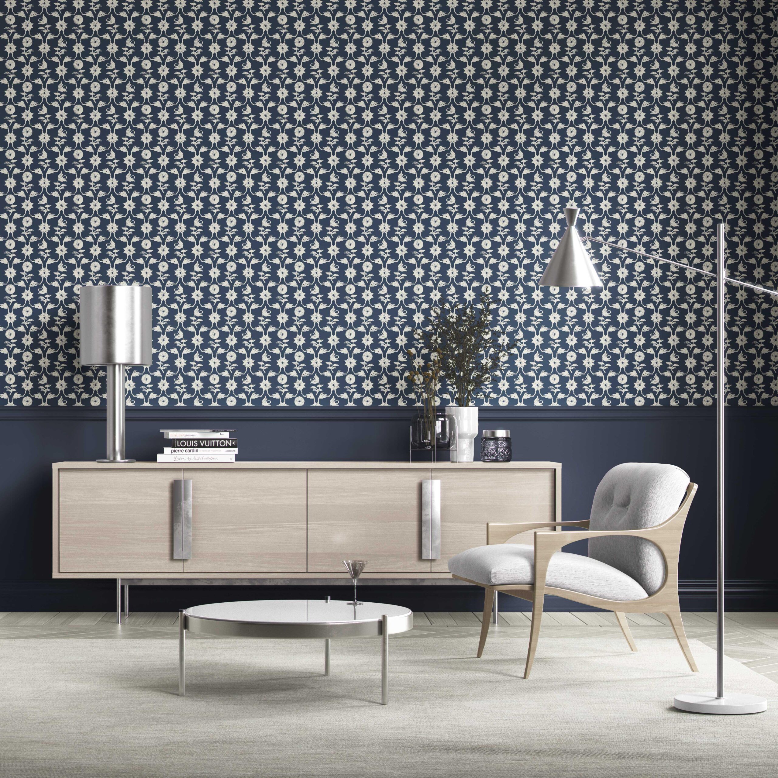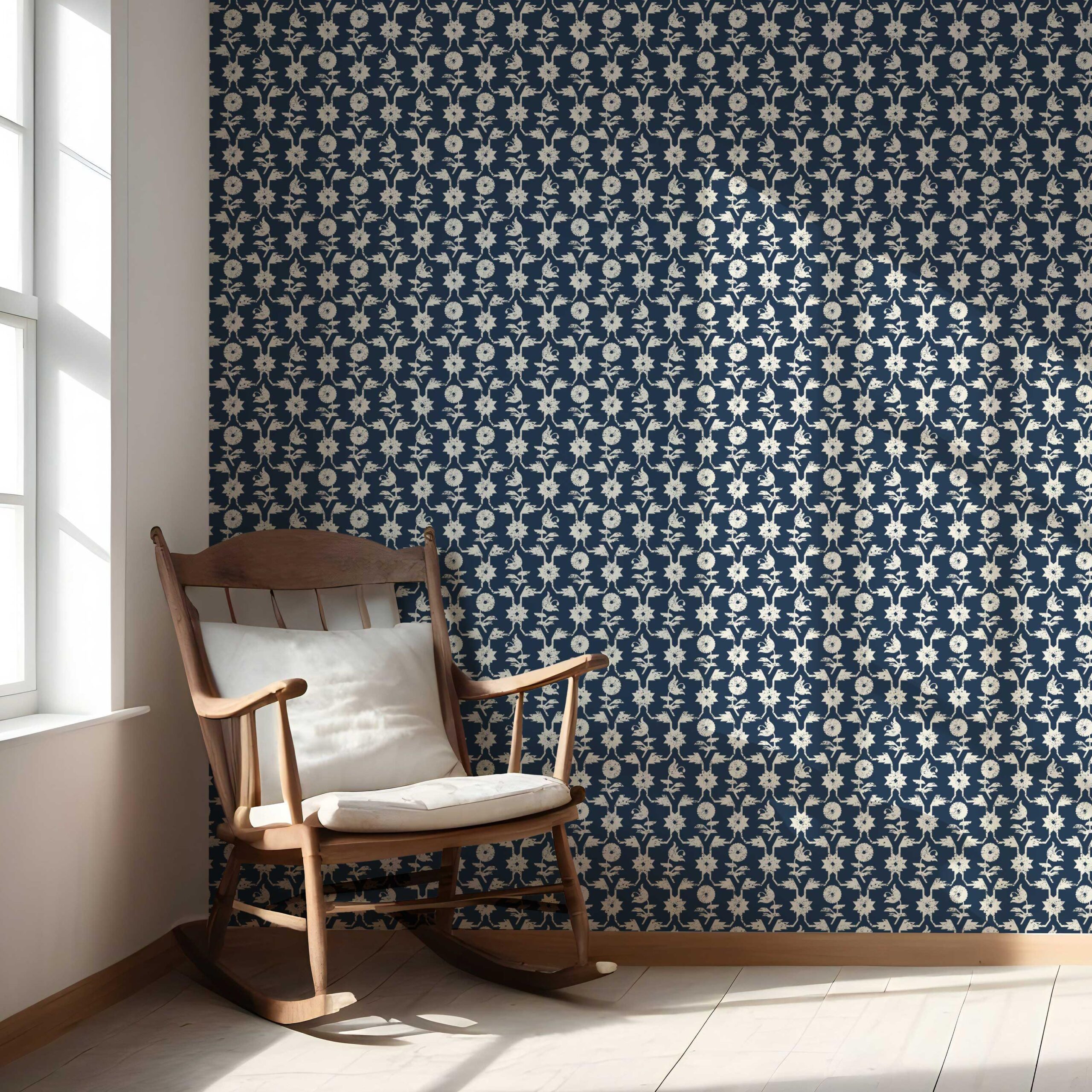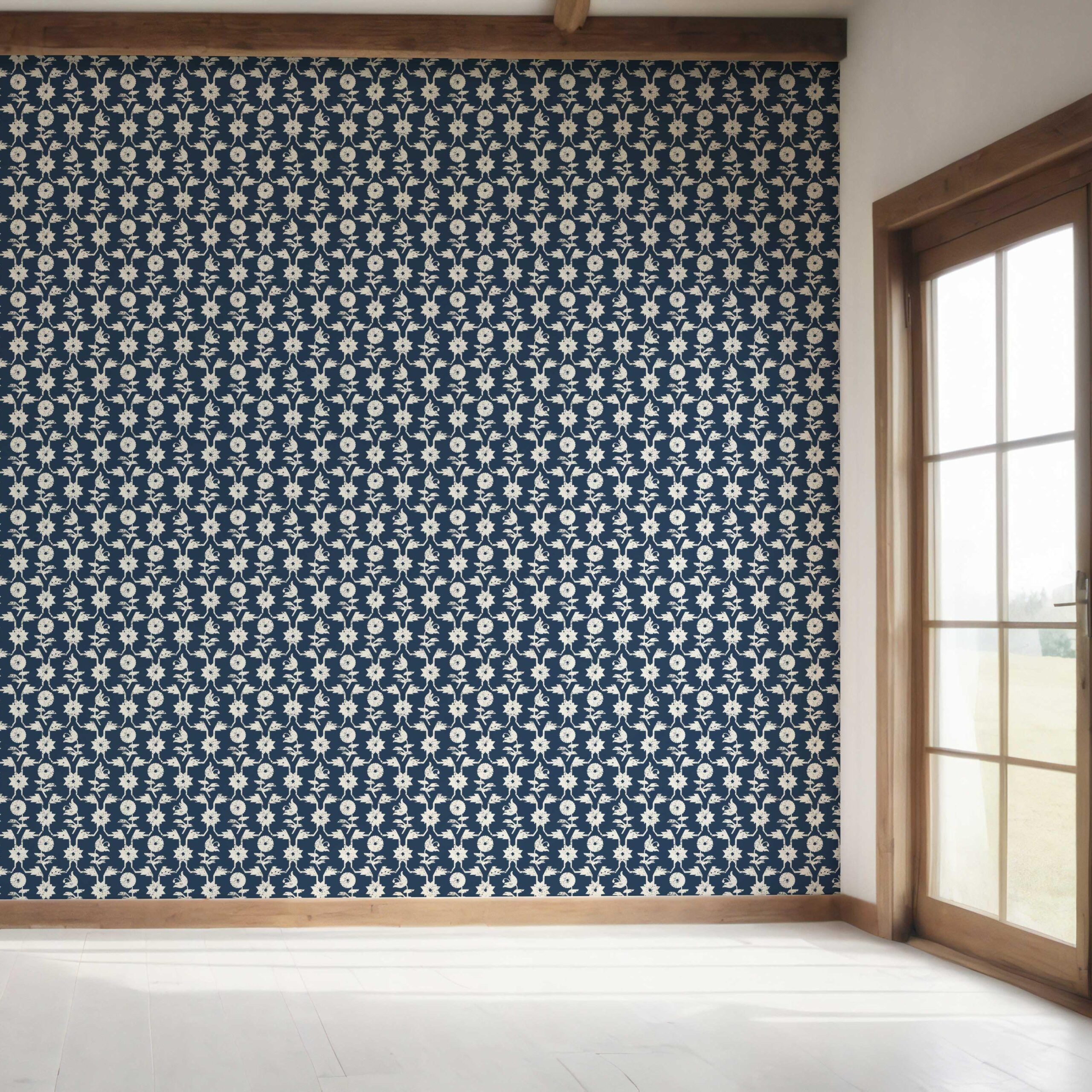 NON-PASTED: ‘Peeping Pearl’ is an unpasted wallpaper installed by applying adhesive paste (not provided by us, but easy to source) to the wall. While peel-and-stick papers do not leave much room to change the paper’s position once you start applying it, the traditional, non-pasted application is more forgiving, allowing for better positioning when matching patterns.