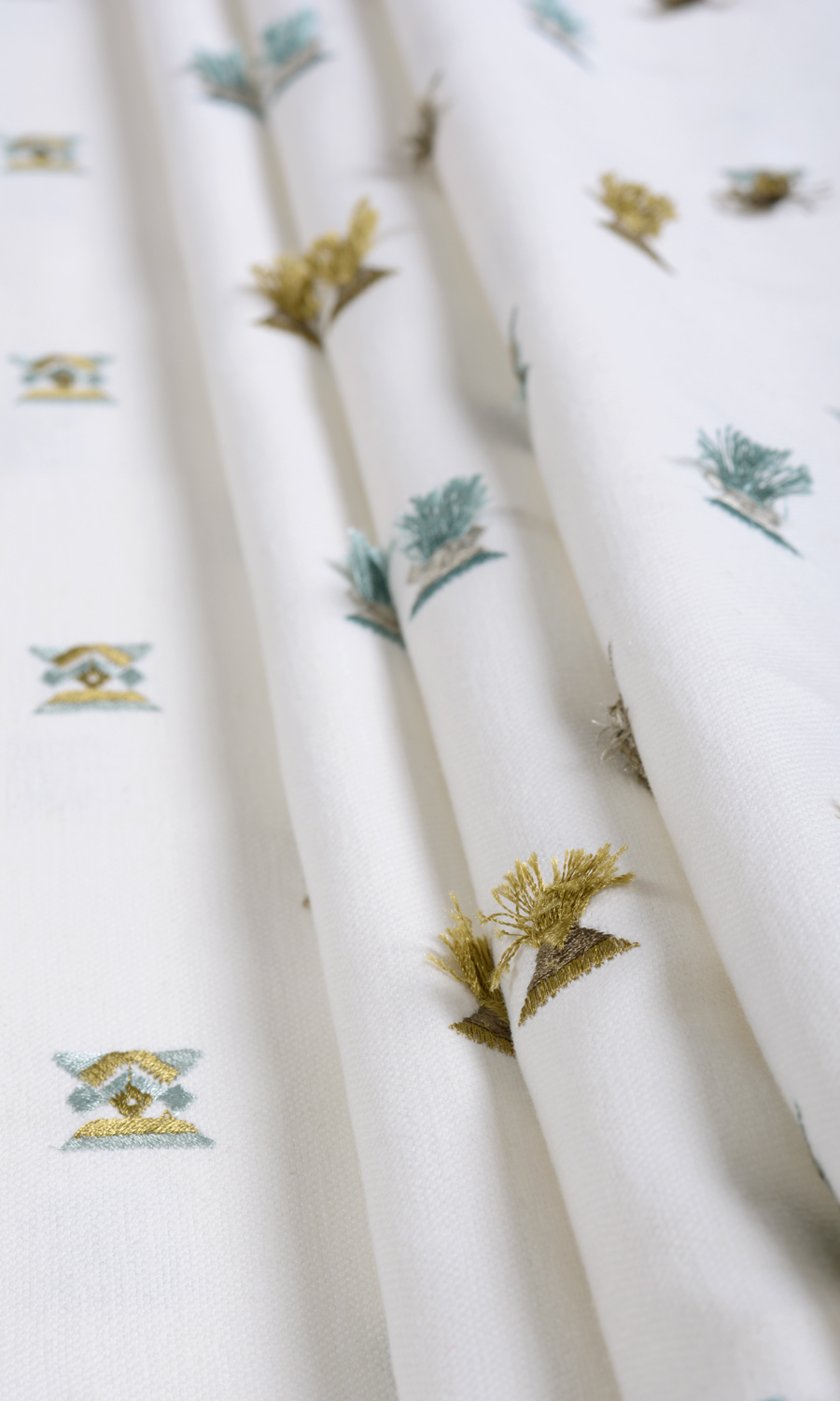 ‘Piana’ Embroidered Custom Curtains (Green/ Blue/ White)