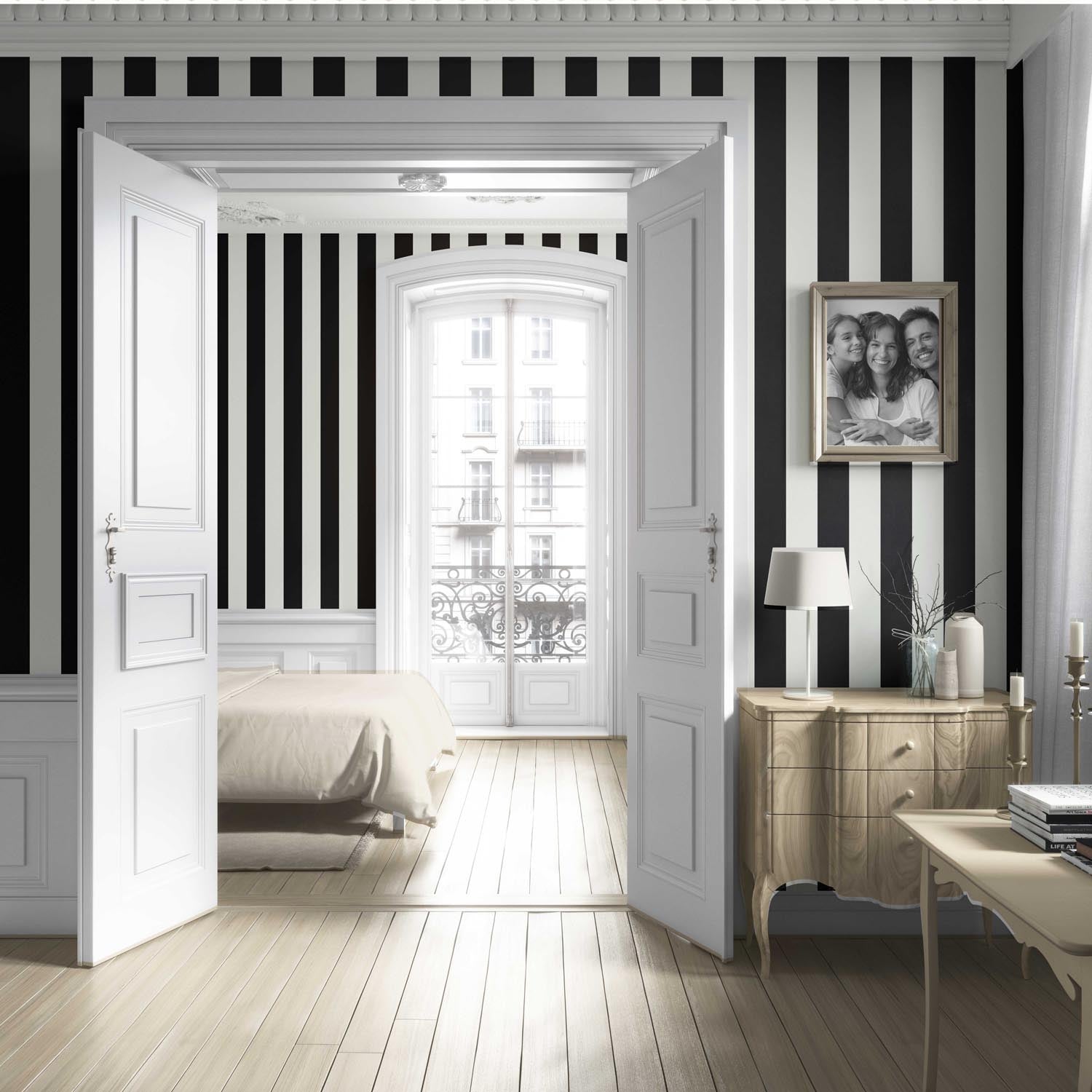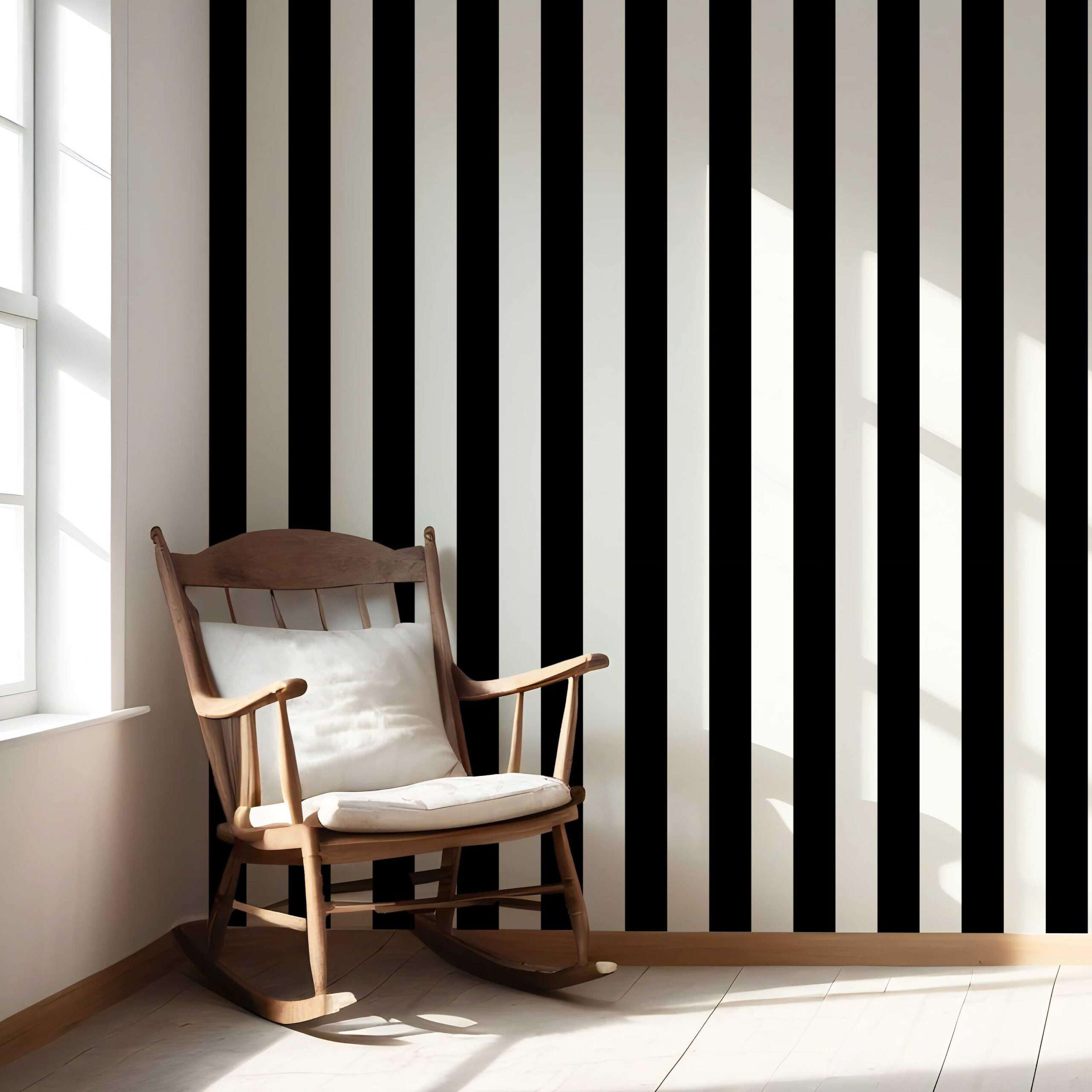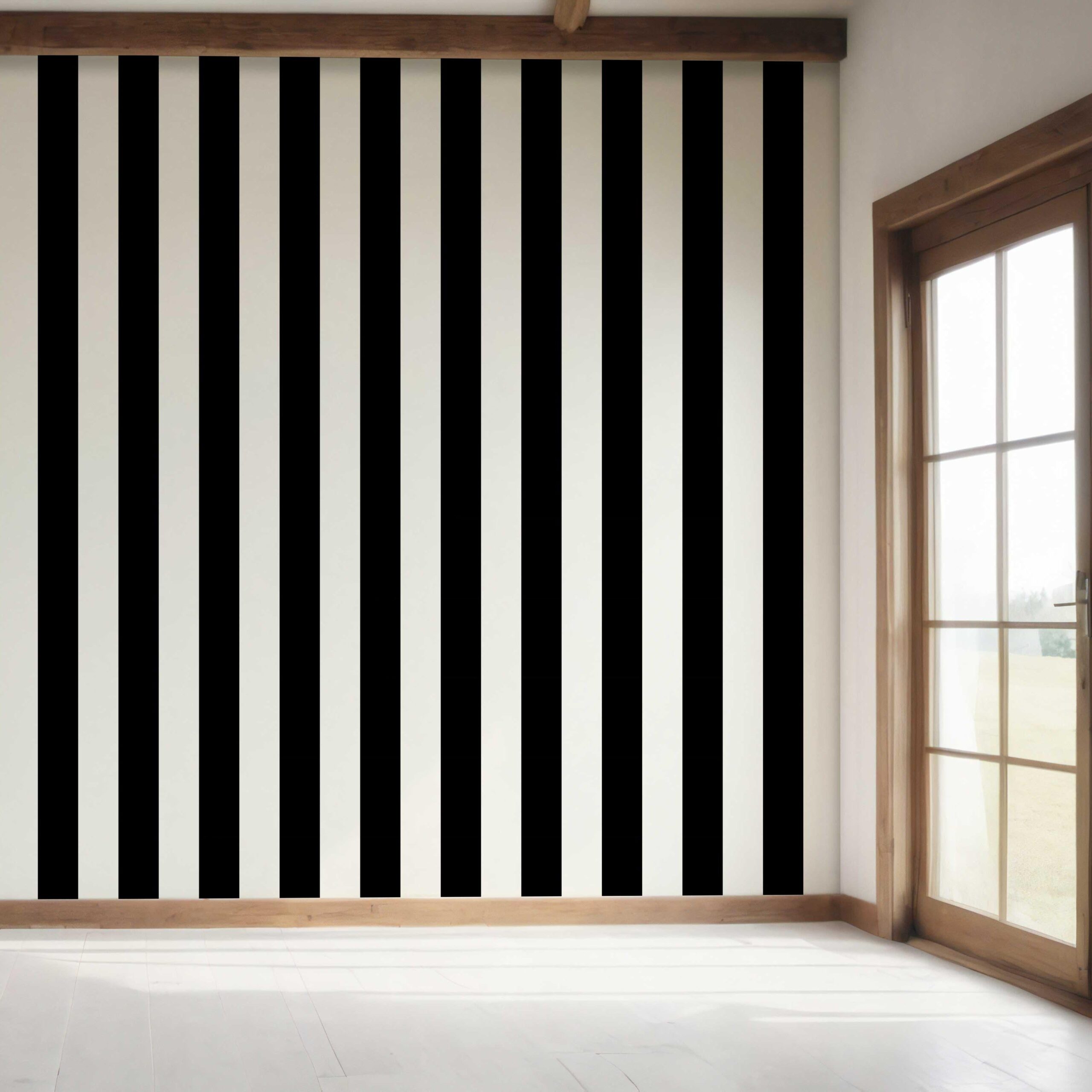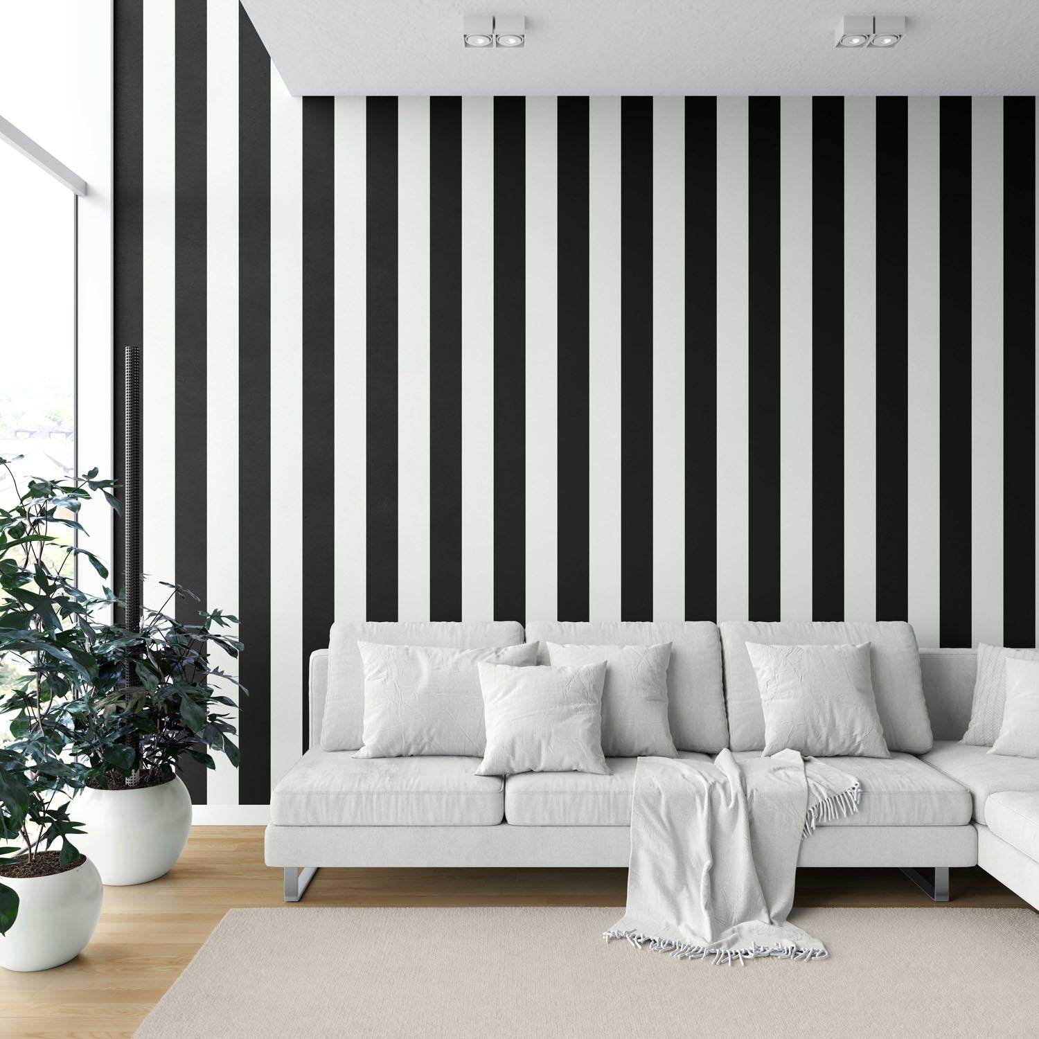 ‘Piranha’ Neutral Scandi/ Geometric Striped Wallpaper (Black/ White)