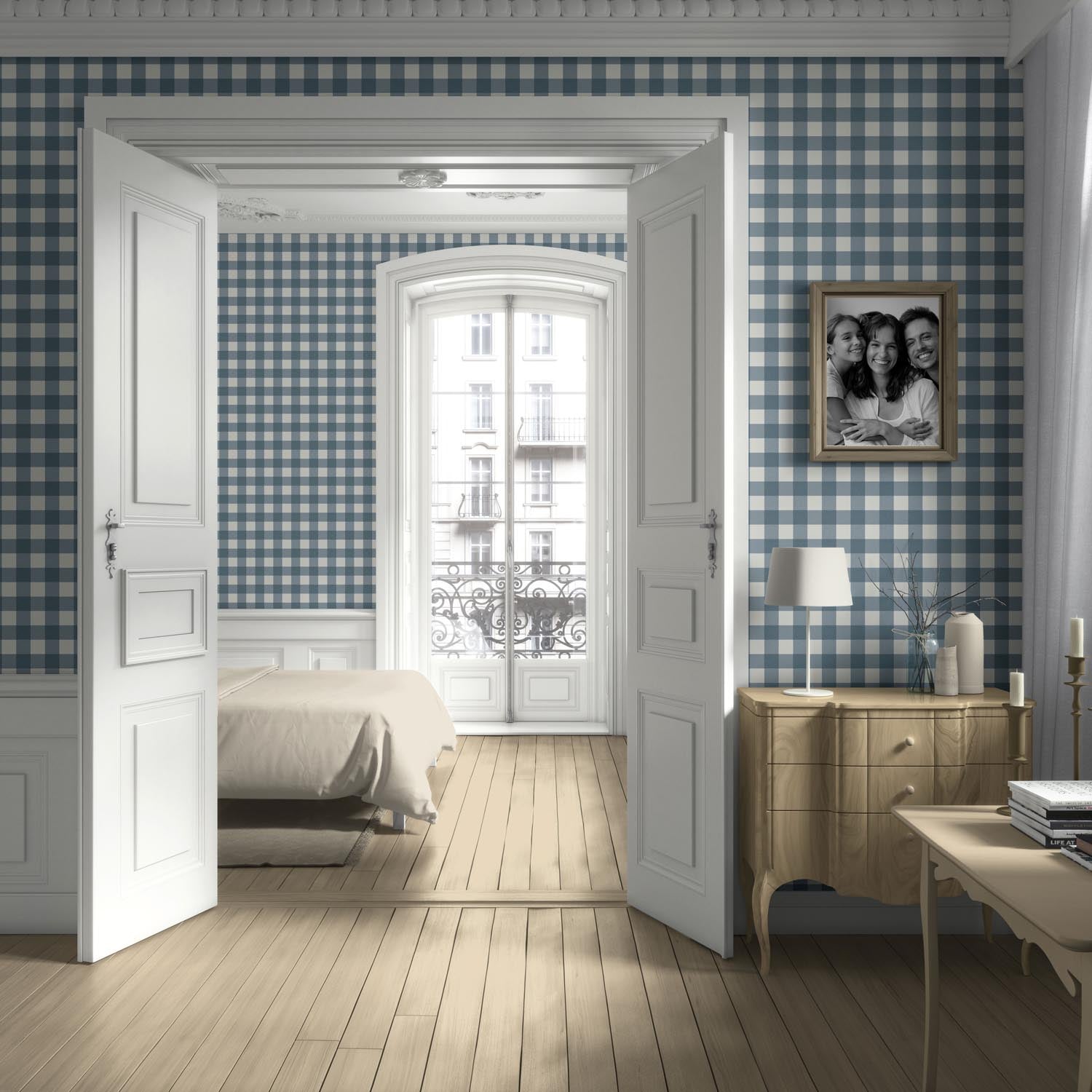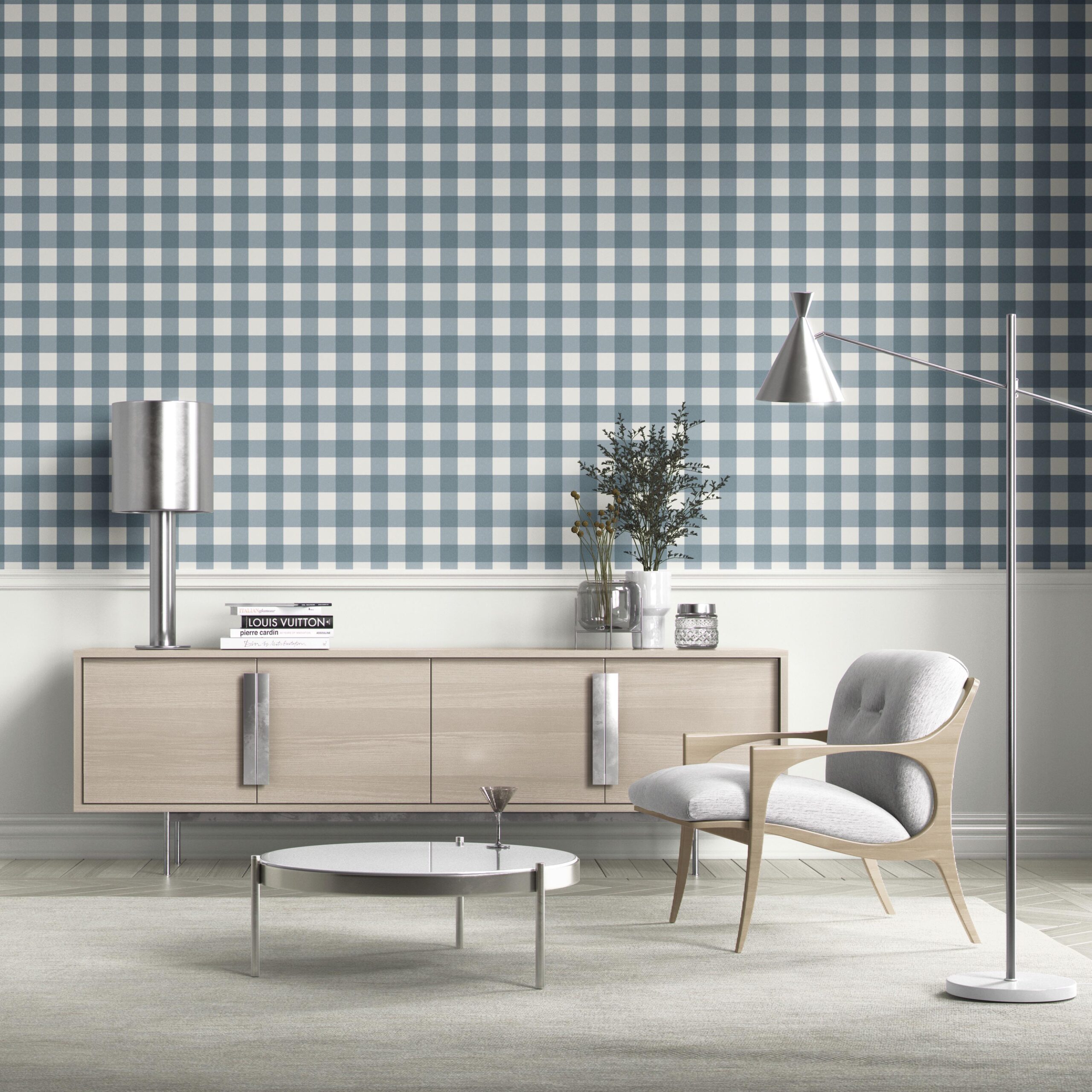 ‘Pixabay’ Geometric Gingham Checkered Wallpaper (Navy Blue)