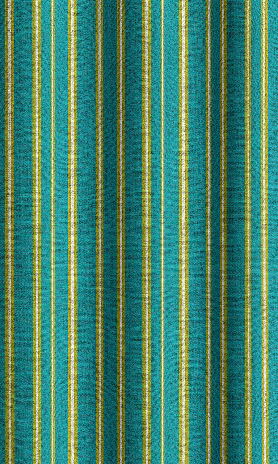 Featuring the most cheerful palette, this stunning fabric is made for cozy kitchens and lively dining rooms. It boasts a trend-right colorway of pacific blue, apple green and linen white, complemented by a pattern of wide and slender repeating stripes. Its blue lends it a pop of pizzazz, but not so much to detract from other elements at play in your decor. Its designer flair makes it suited to upscale looks as well as relaxed, contemporary settings.?