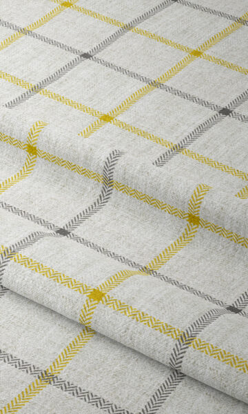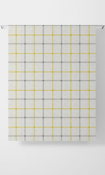 Featuring a big-block plaid pattern of yellow and grey on a tactile linen white – hues that lend a contemporary twist to the otherwise traditional pattern. Whether you’re fashioning a mid-century modern living room or a contemporary-chic dining space, you can use this elegant fabric for drapes and shades that never fail to impress.?