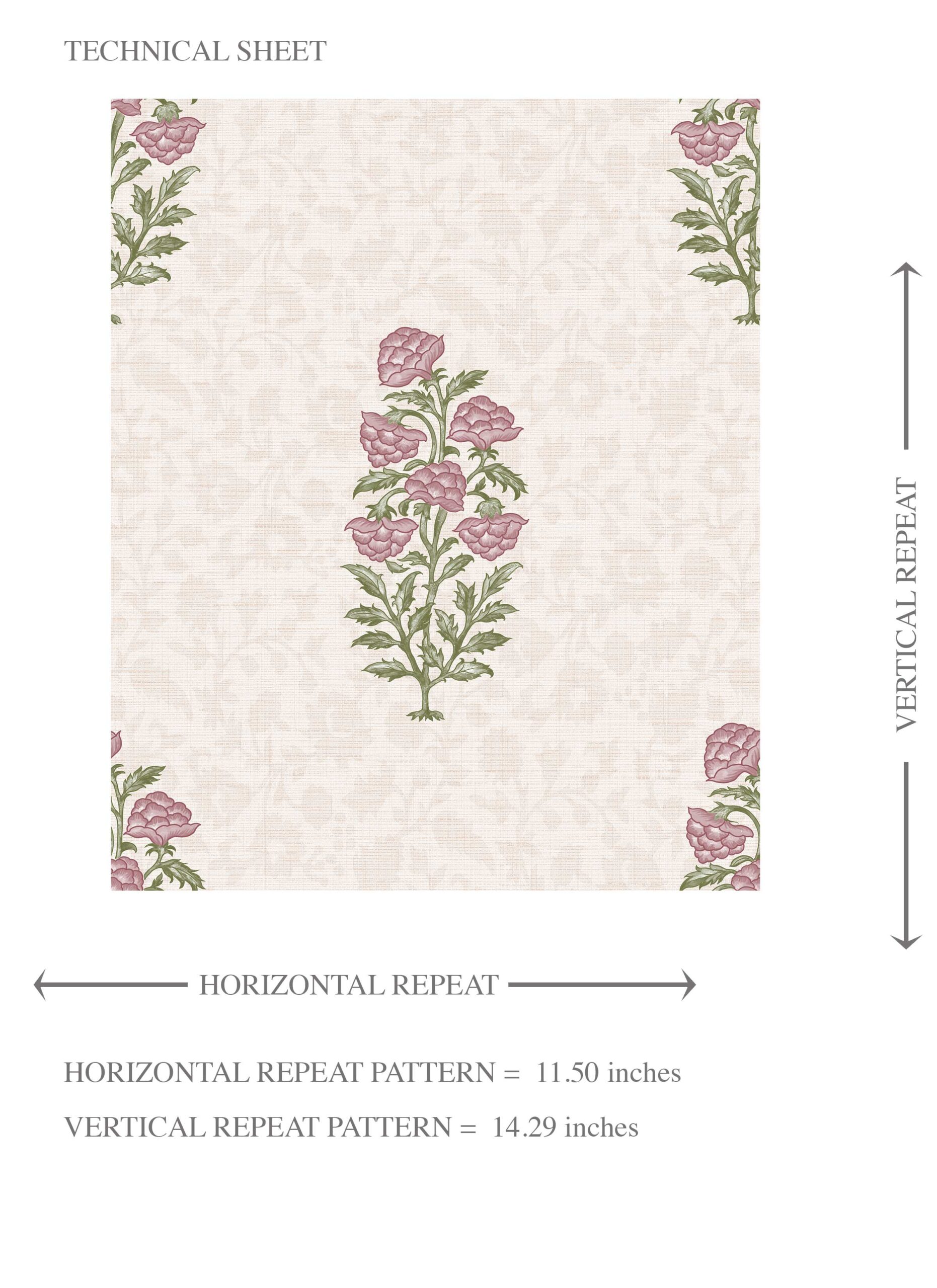 NON-PASTED: ‘Princess Belle’ is an unpasted wallpaper installed by applying adhesive paste (not provided by us, but easy to source) to the wall. While peel-and-stick papers do not leave much room to change the paper’s position once you start applying it, the traditional, non-pasted application is more forgiving, allowing for better positioning when matching patterns.