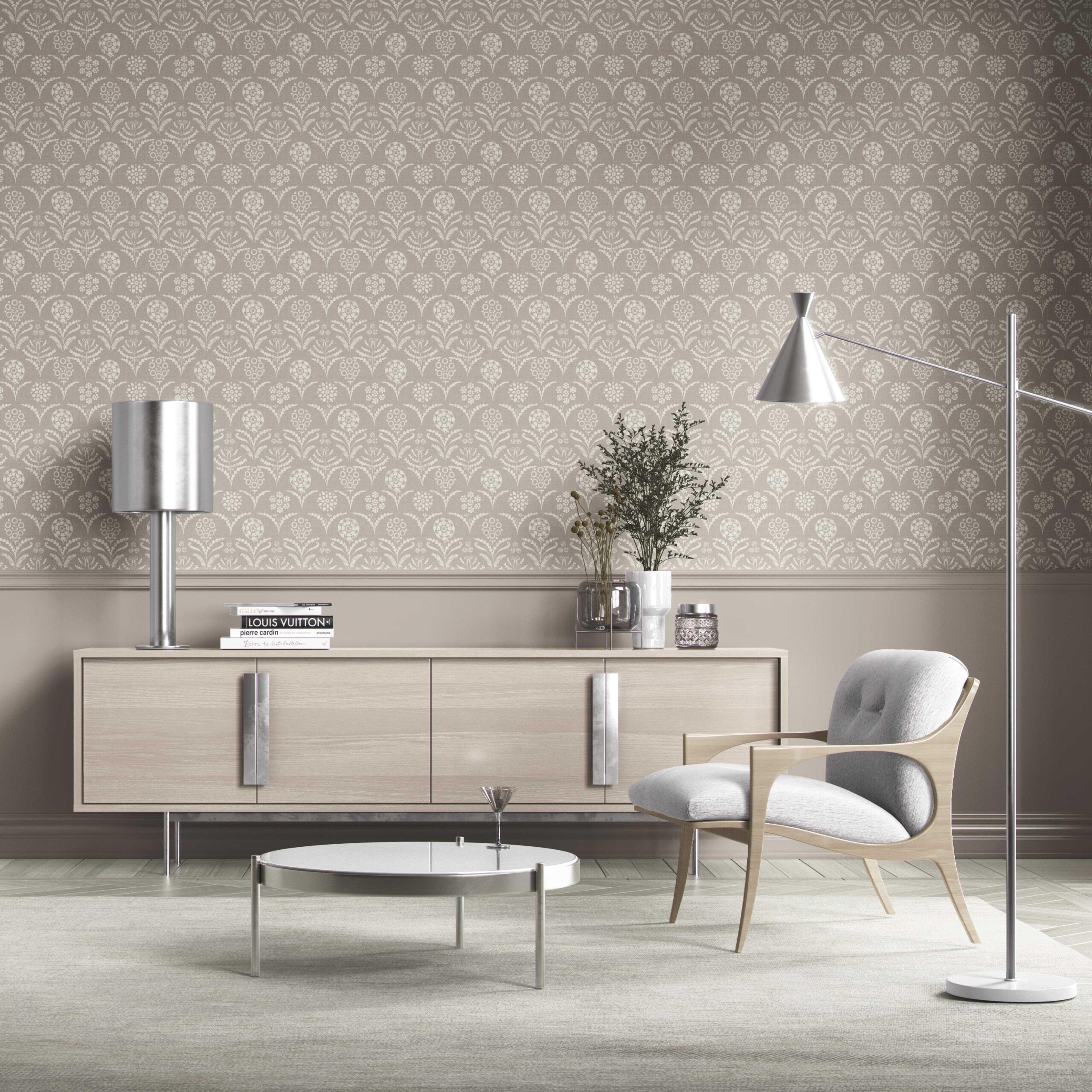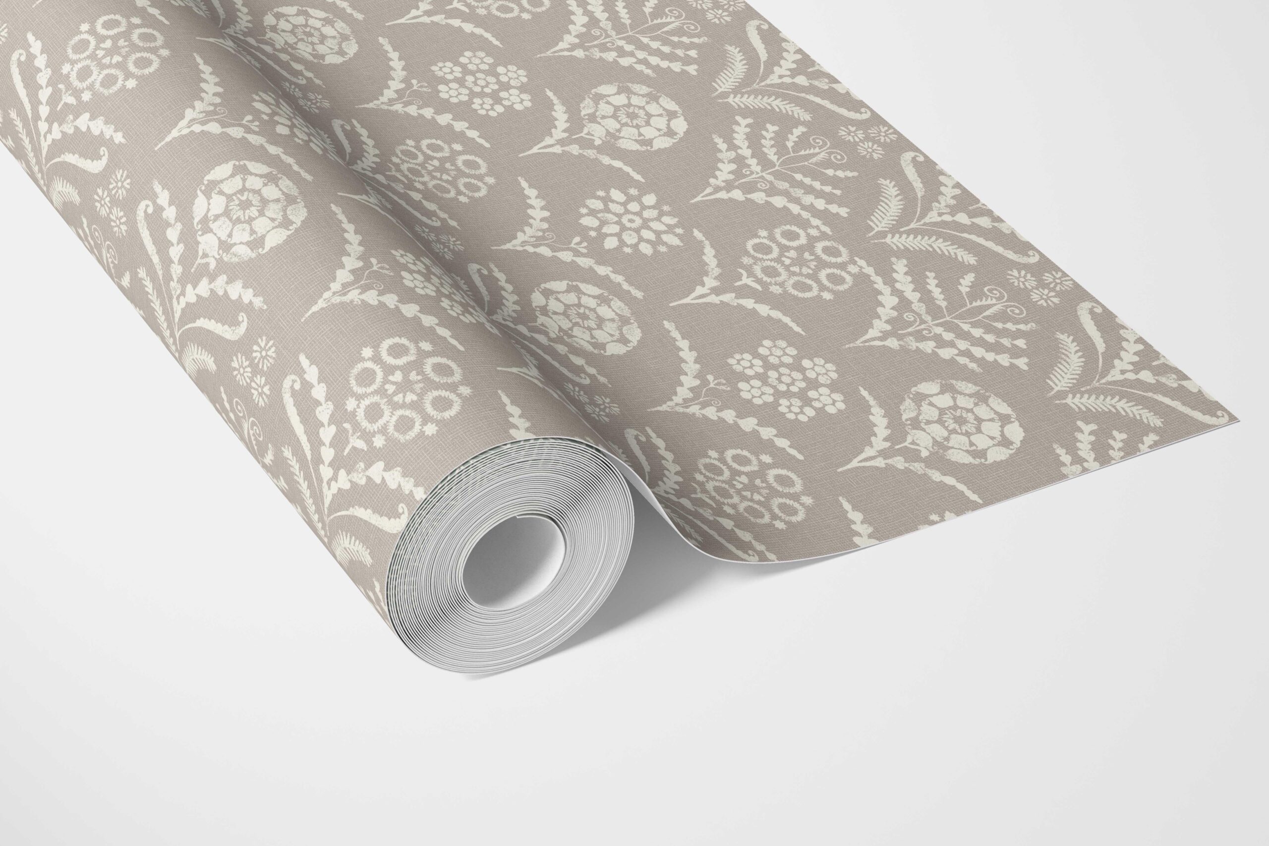 ‘Prometheus’ Modern Neural-Toned Floral/ Botanical Wallpaper (Warm Gray/ Greige/ White)