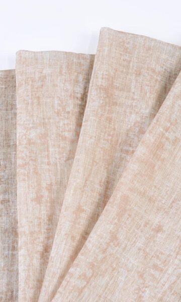 For a home that loves to flaunt sunny hues, Raffia will be pure delight! With a lovely linen-like texture and a hazy melange of white and peachy orange, this sheer fabric is as soothing as an evening breeze. Use as a single layer for a patio doorway or team up with blackout drapes in a guest bedroom, and watch it scatter its lazy charm.