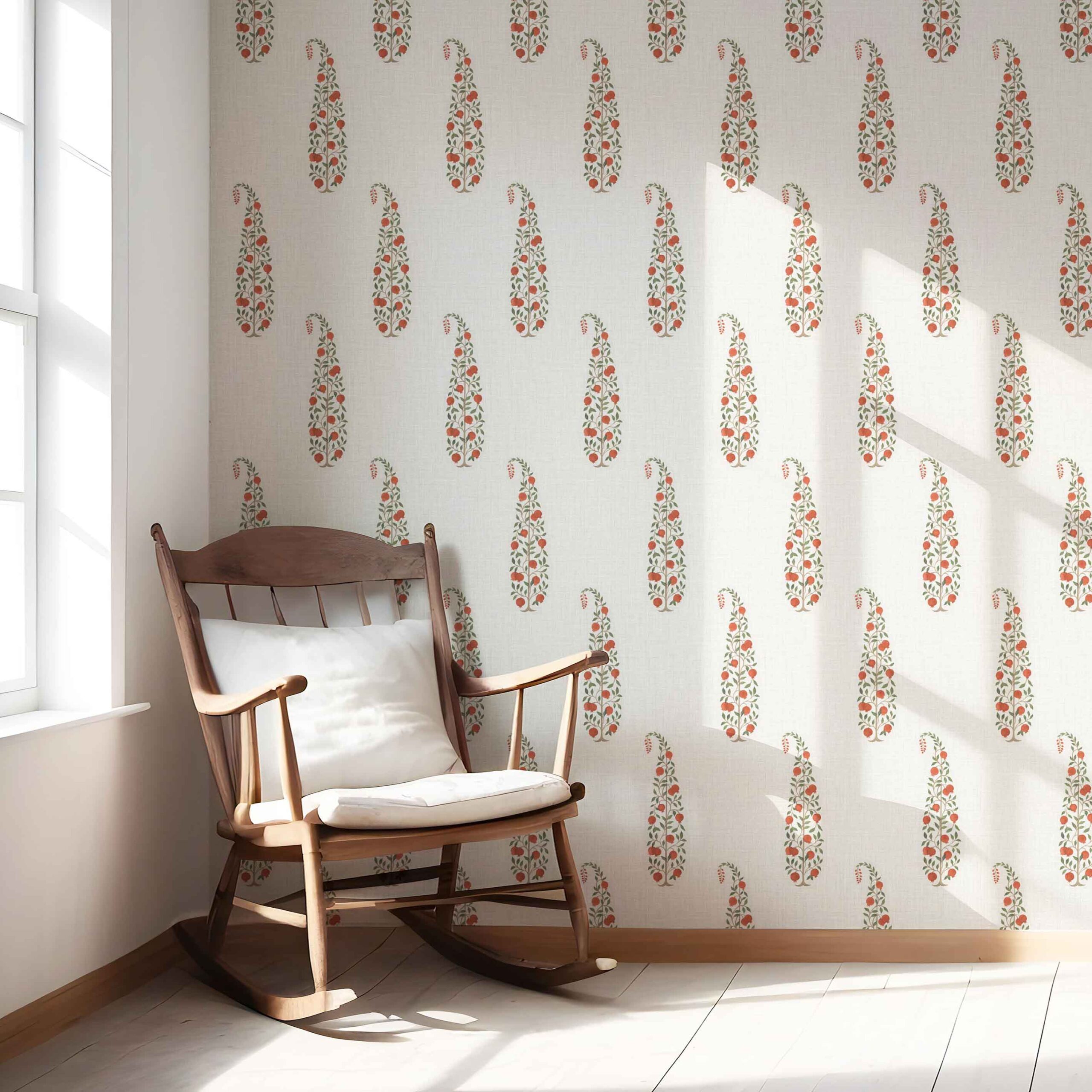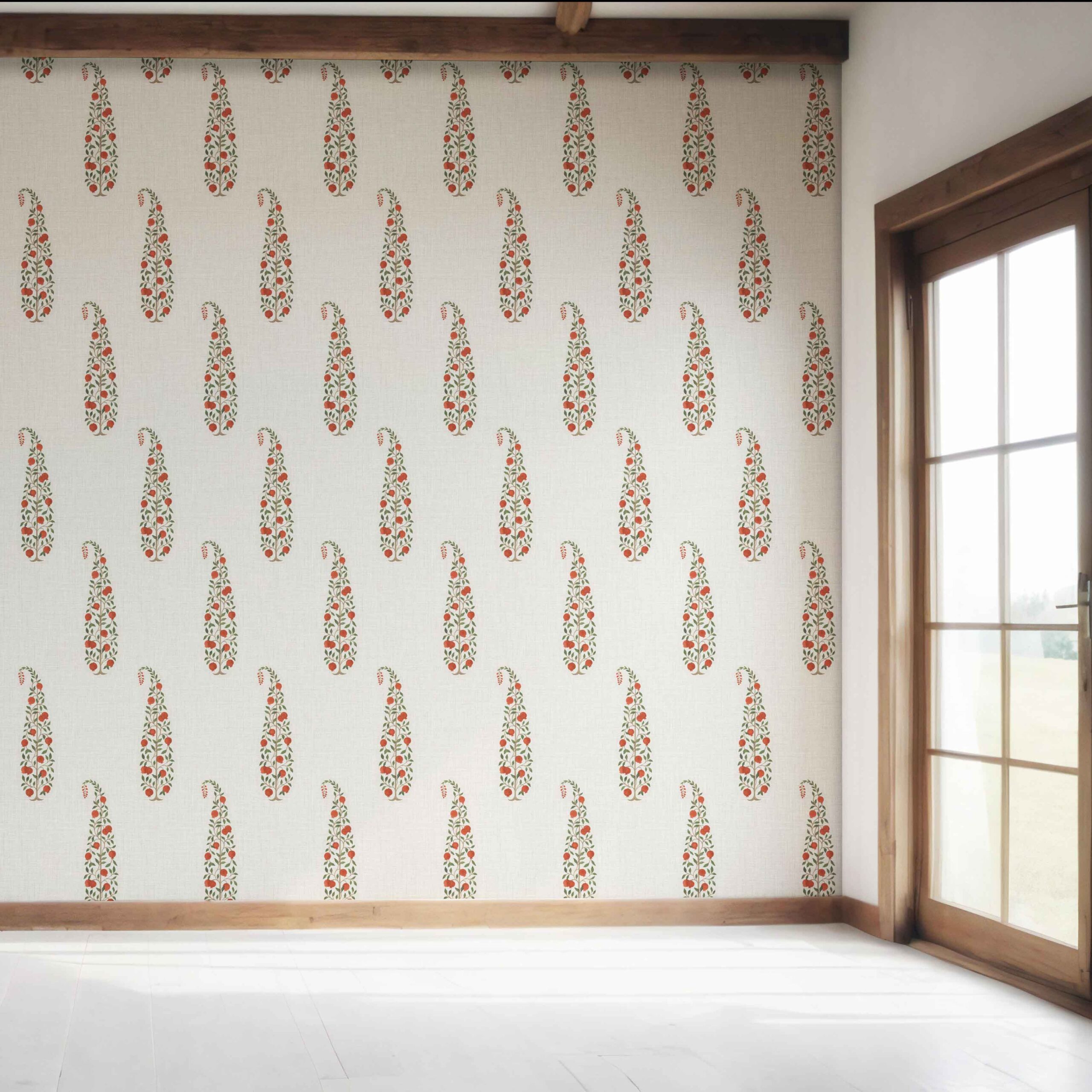 NON-PASTED: ‘Ramsen’ is an unpasted wallpaper installed by applying adhesive paste (not provided by us, but easy to source) to the wall. While peel-and-stick papers do not leave much room to change the paper’s position once you start applying it, the traditional, non-pasted application is more forgiving, allowing for better positioning when matching patterns.