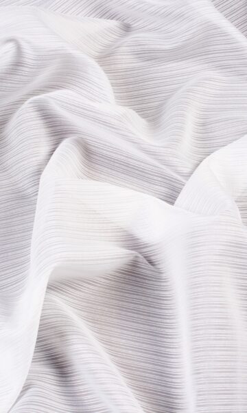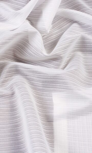 An ethereal white sheer! Mimicking the ridges of a whelk shell, Rare Time offers lustrous ridges on a pristine white sheer base. With just a hint of glamor and detail, this sheer offers to walk with the minimalist savoir-faire of modern spaces and light-filled homes.