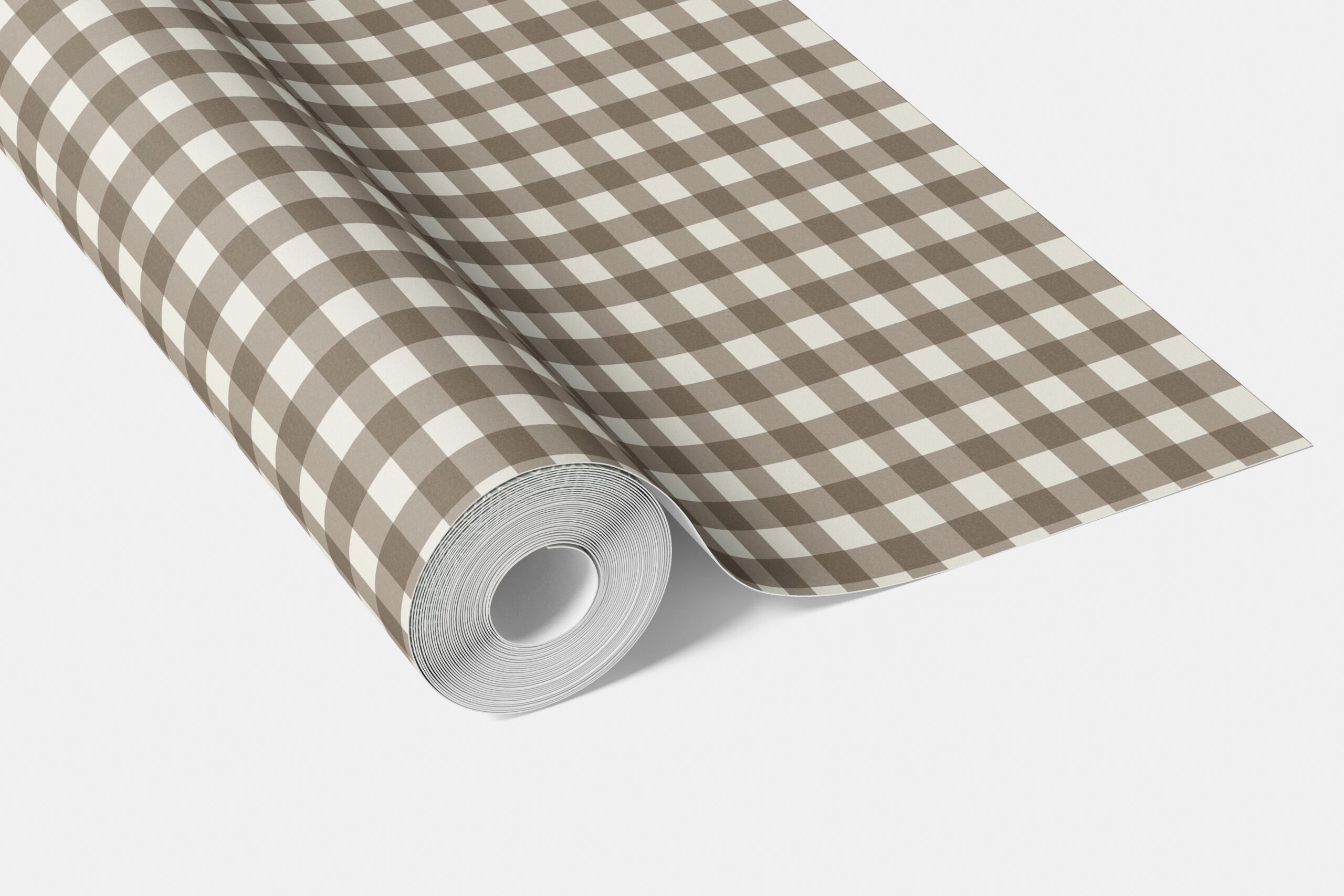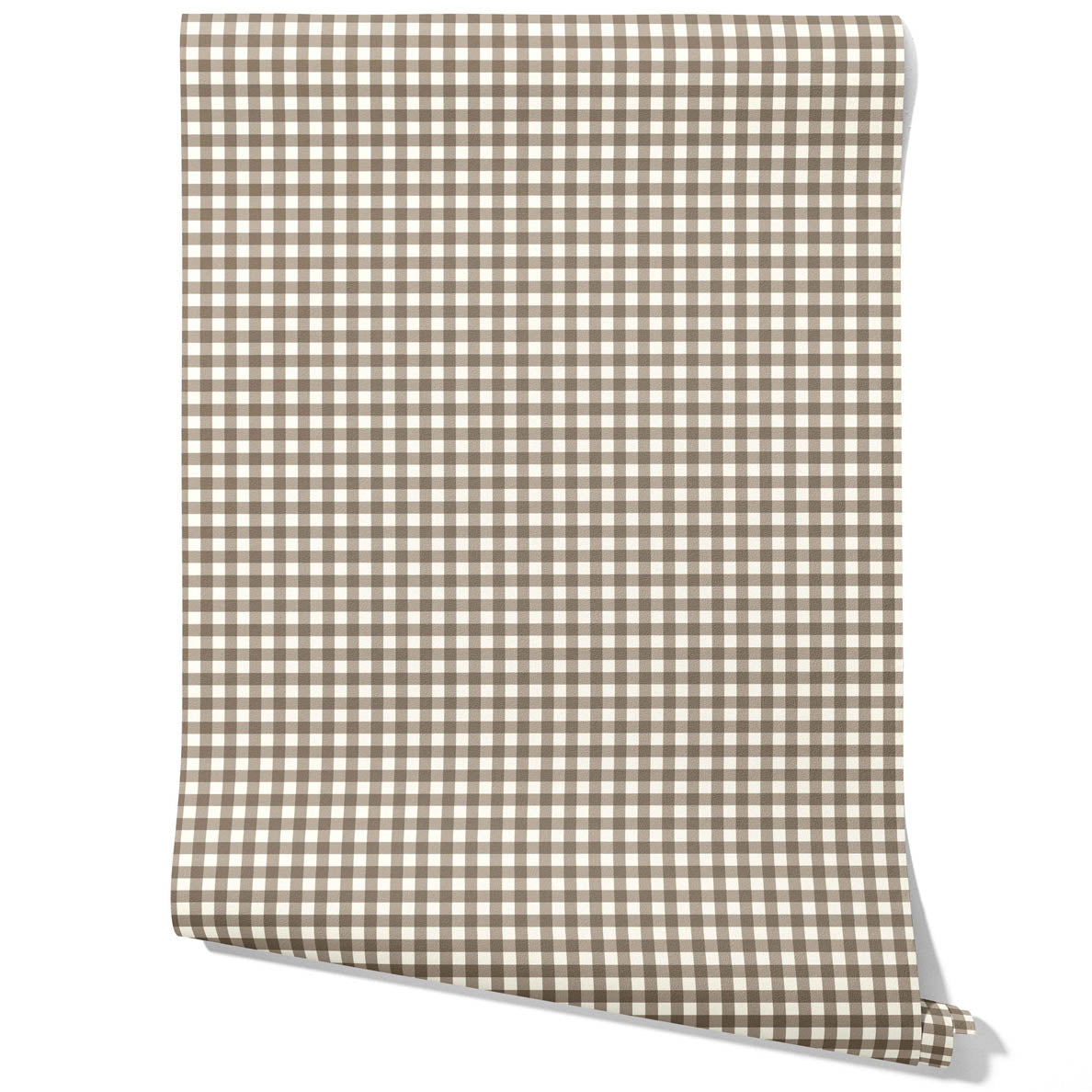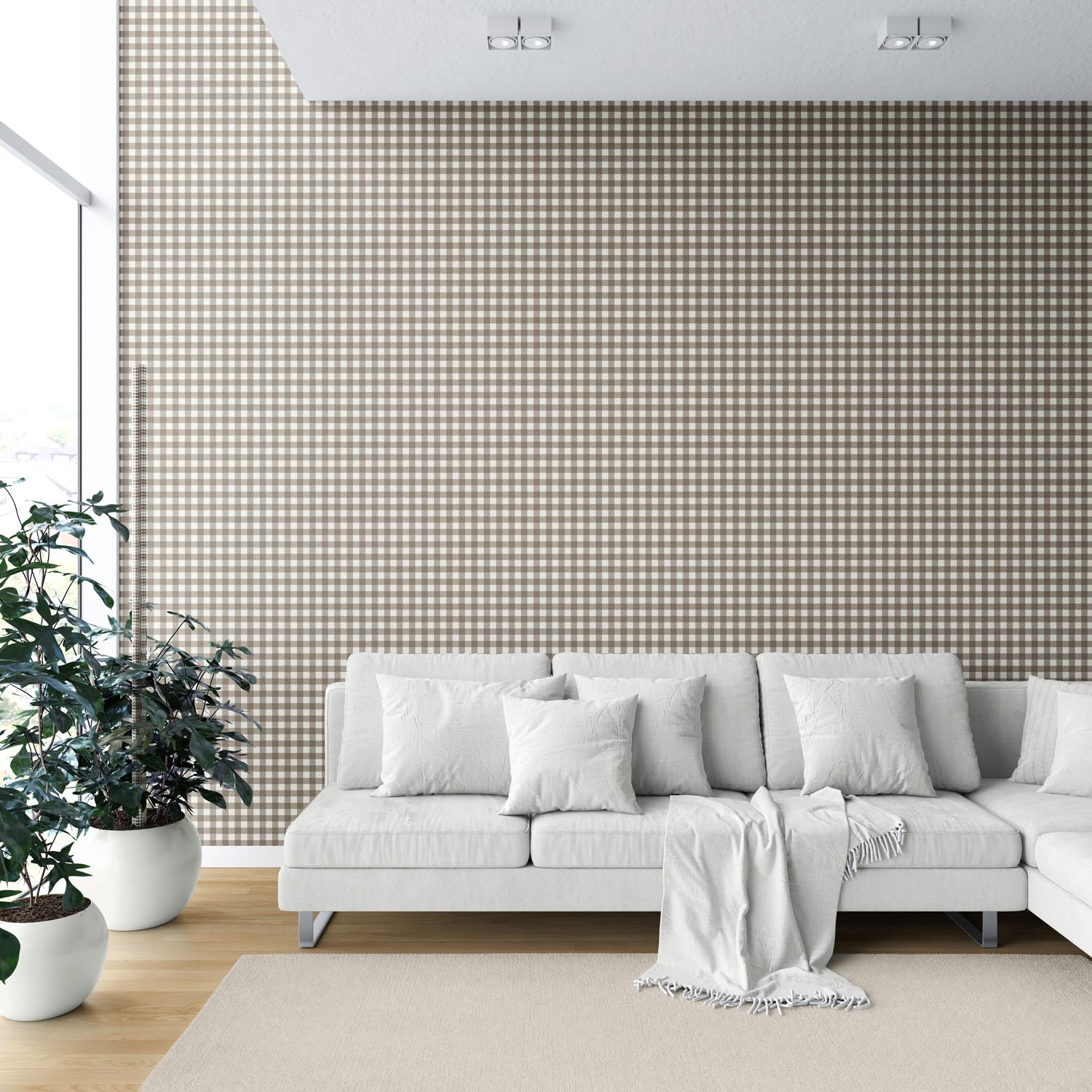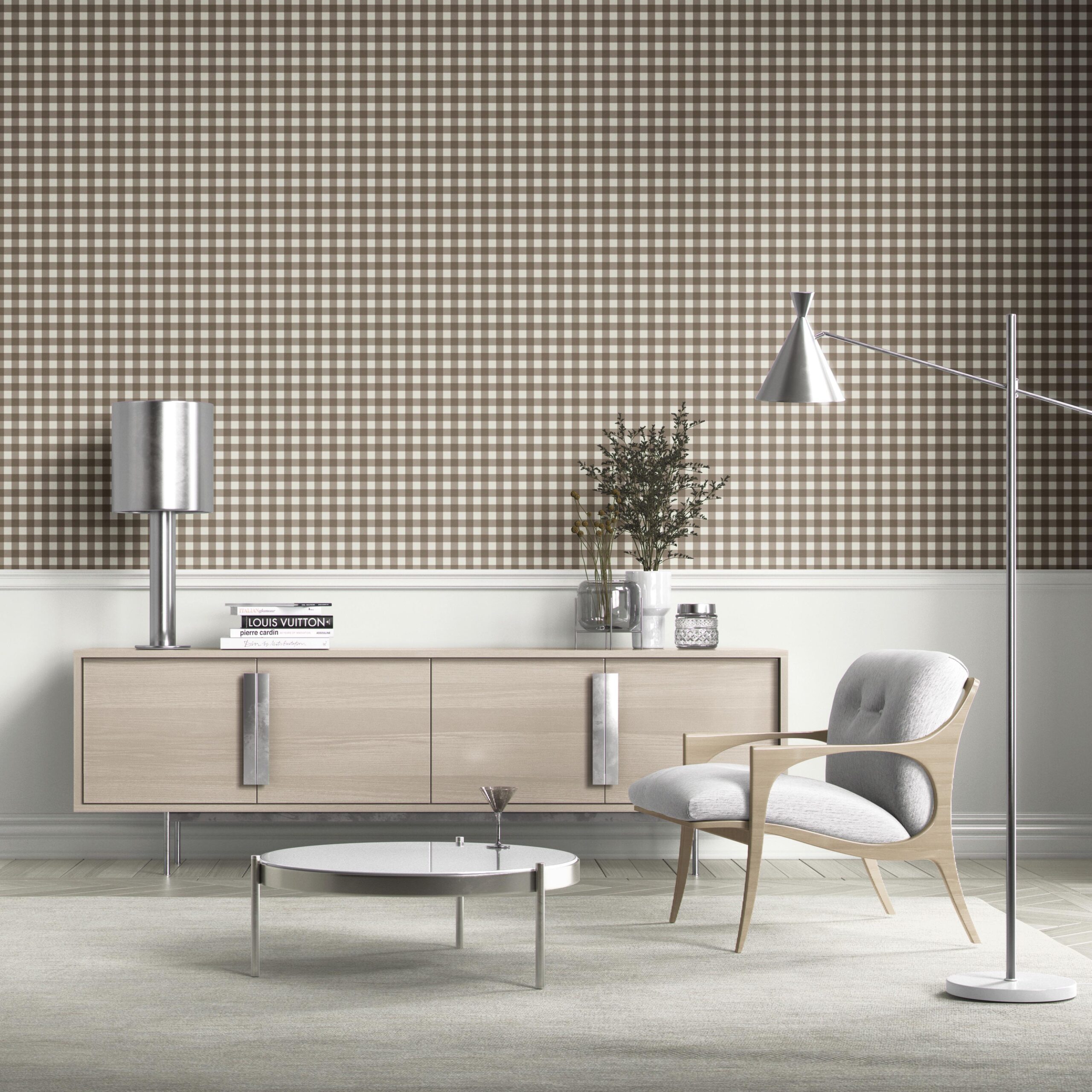 ‘Ray Hope’ Neutral Geometric Gingham Checkered Wallpaper (Brown/ Taupe)