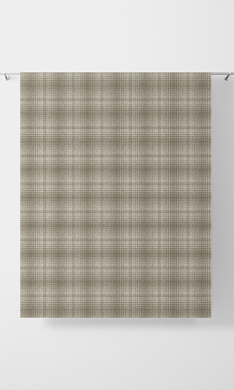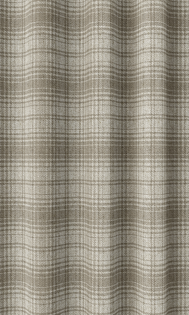 A wonderfully versatile fabric that looks good both as a drape and roman shades. While it uses a classic, neutral palette of ivory and a warm, woody beige – it blends the two into a smooth, visually enticing plaid gradient that makes a space more interesting without overpowering it.