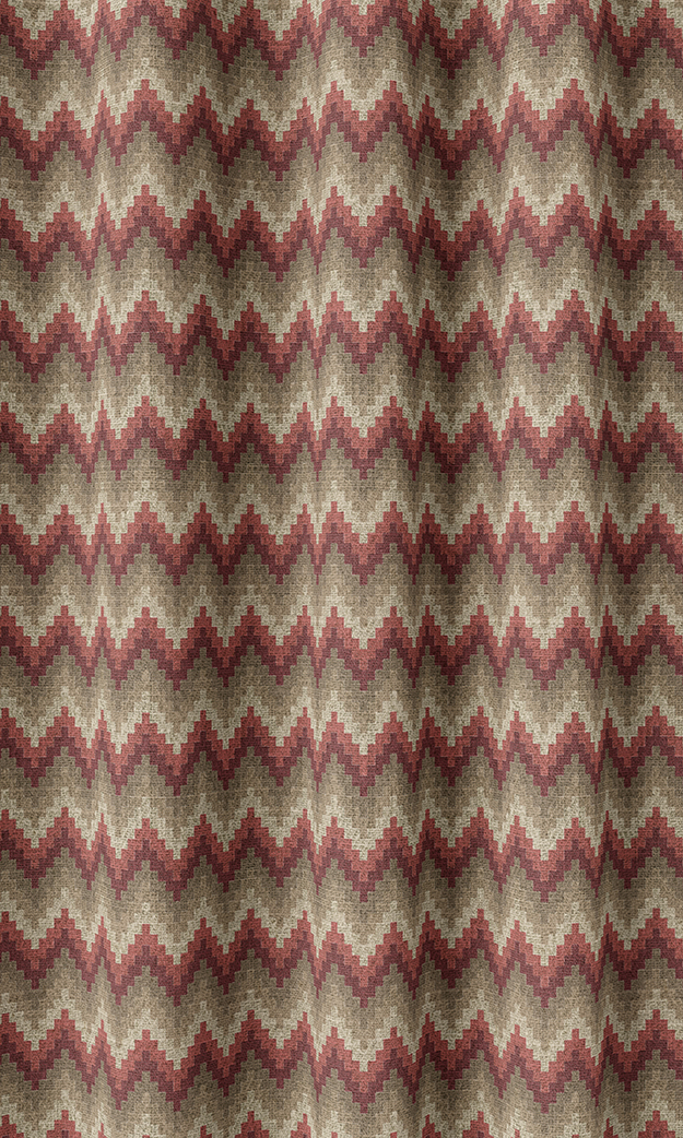 For lovers of geometric designs, this chic fabric featuring medium-scaled chevrons is an out-and-out pick. It?s an enticing mix of an energetic pattern and an assorted color palette. Red, maroon, white and beige offers a sophisticated coloration suitable for vibrant interiors while the playful motif accentuates its effect on the space. Drapes and roman shades in this fabric will be an attractive addition to modern and contemporary homes.