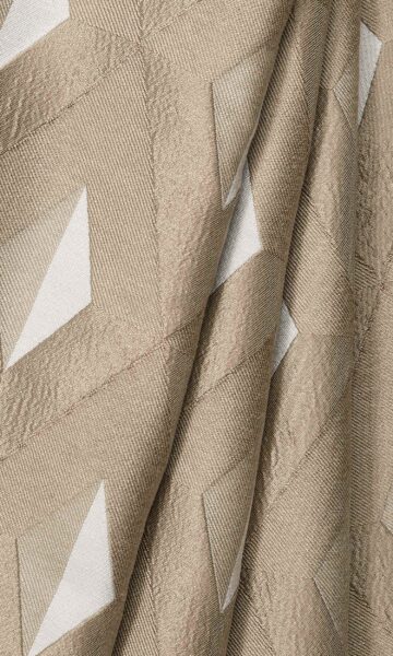 If your decor style is modern or industrial, this is the fabric to add depth to it. It features an elegant lattice and triangle design accentuated with varying textures and weaves. A tan brown on white color scheme is perfect for that clean and crisp look. Also an excellent material for roman shades.