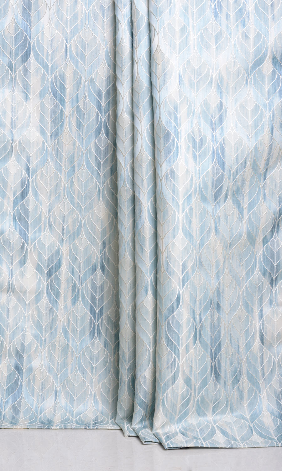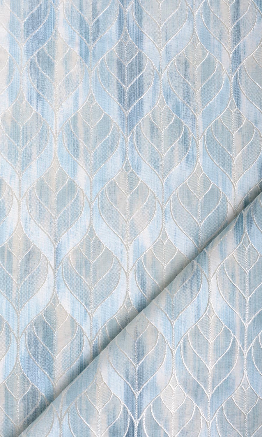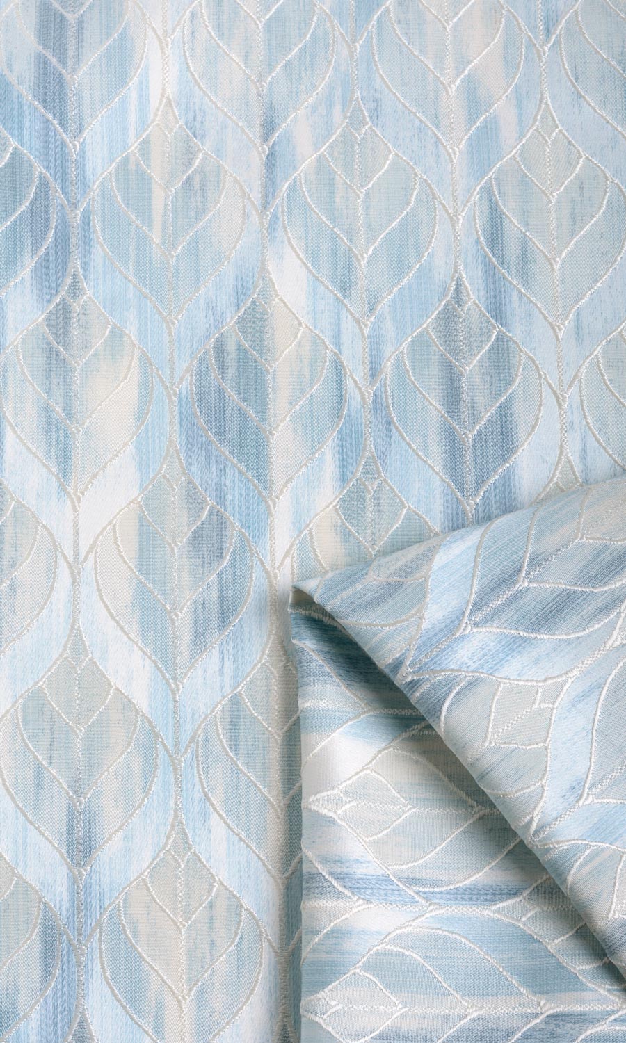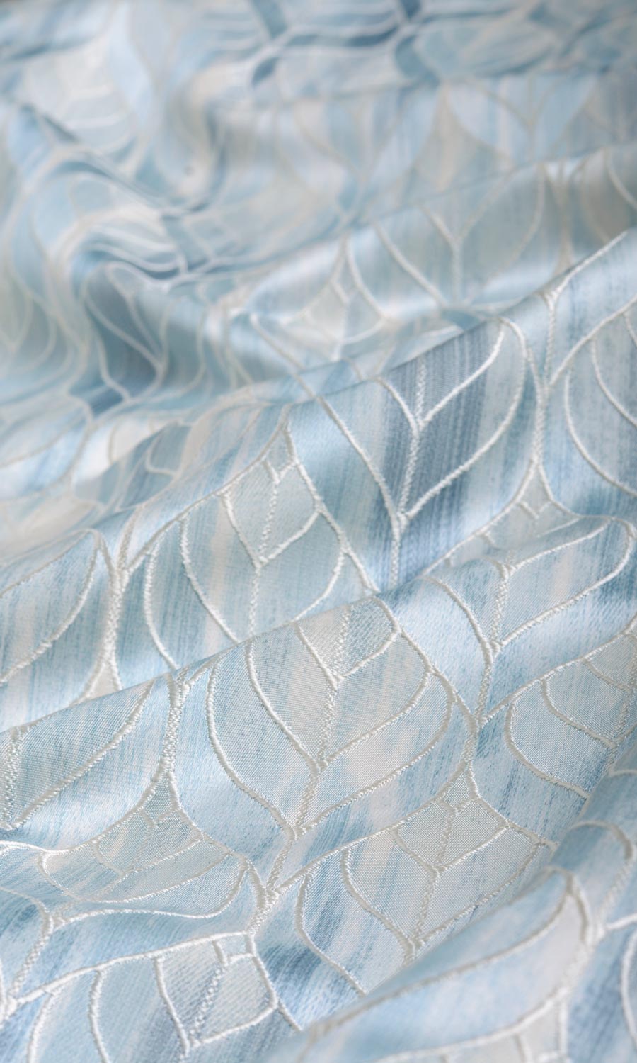 Muted blues and leaf ribs all over – a still from a nostalgic cloudy evening sidewalk! This understated beauty that taps the coolness of sky blue and grey in foggy shapes offers a contrast of forms with the neatly outlined leaf motif layered on top. With a vast capacity to mingle with varied decor styles, curtains and roman shades in this lovely fabric are a timeless addition to the home.