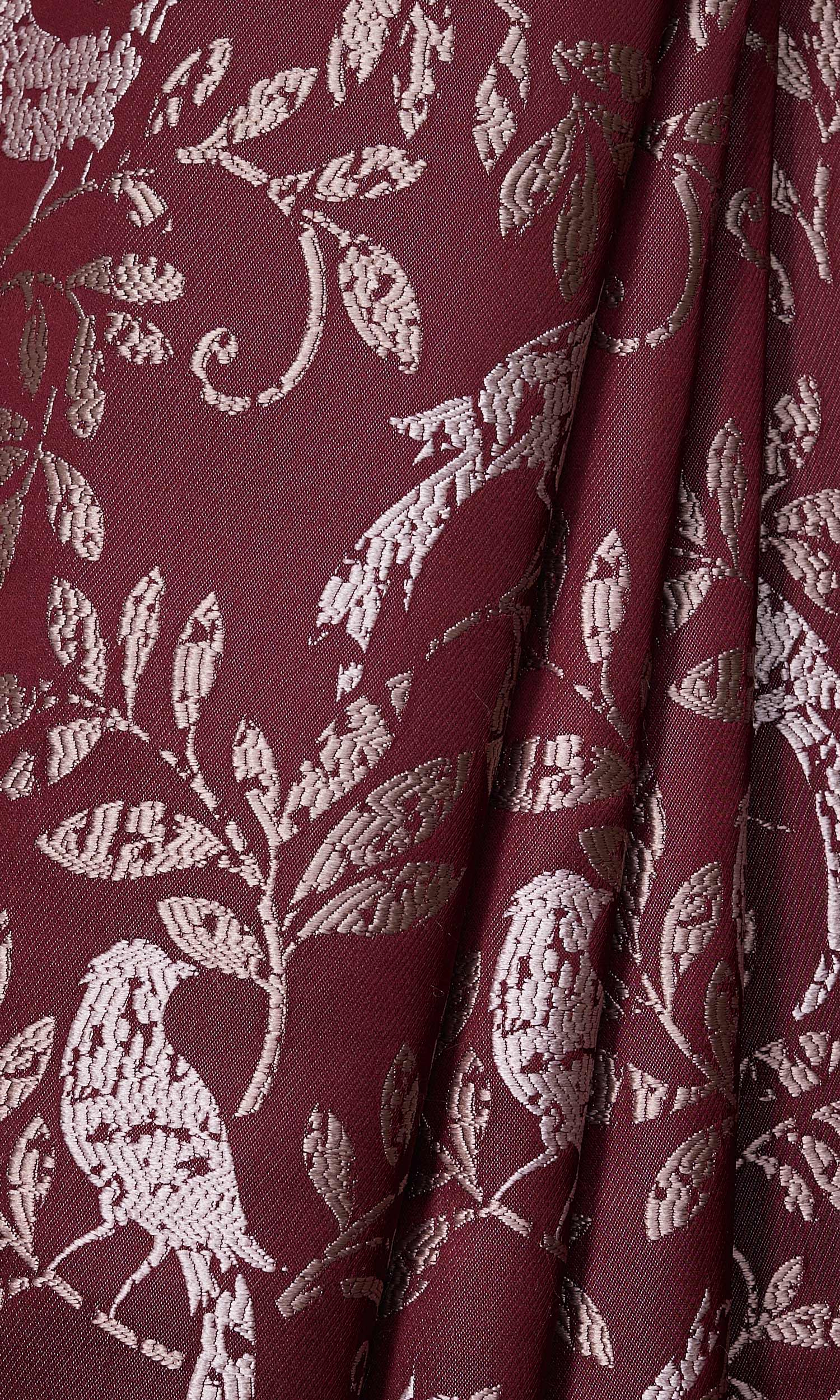 Give your rooms an old world charm with this jacquard woven fabric. Its elegant bird and foliage design in old burgundy, dusty rose pink and soft white hues is inspired by vintage French drapery. Perfect if you love country chic decor!