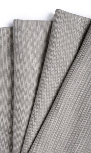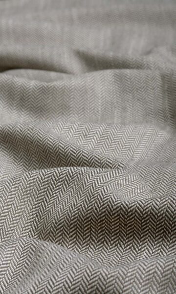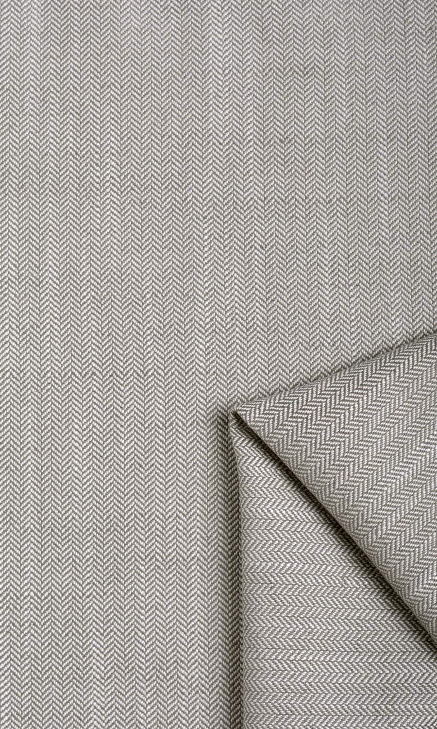 Featuring the classic herringbone weave, this self-patterned fabric might interest fans of monochrome on a richly texture base. The warm gray and white tones produce a calming effect, and backdrop dark and bold-hued elements of your home very well. Lacking prints, this drapery fabric is ideal for styles that create designs through the construct such as pinch pleat drapes, relaxed roman shades, and front-slatted roman shades.