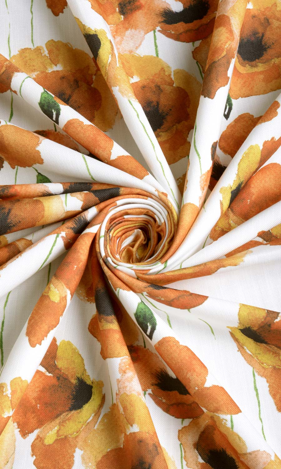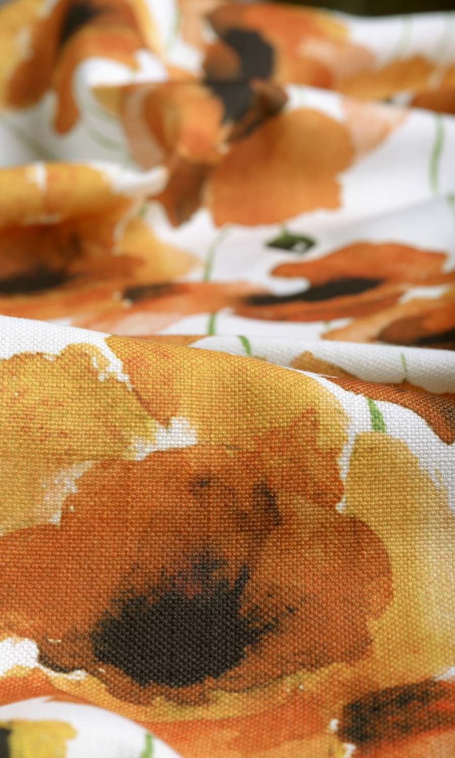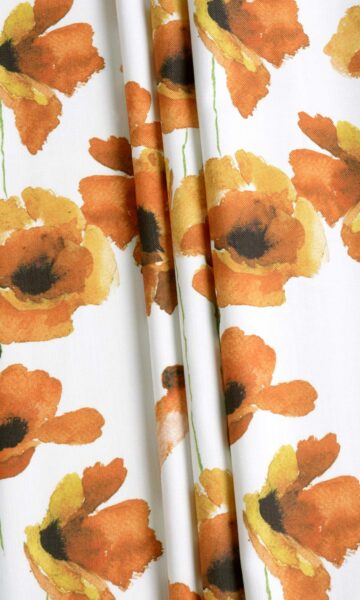Grand watercolor sketches of poppies on slender stems – a rare contemporary take on a traditional floral theme! The spirited color scheme of white and apricot, and the magnified scaling make window treatments in this fabric an out-and-out choice for spacious rooms! ?Robust Orange? presents a clever alternative to floral wallpapers if you don?t want the garden theme centerstage all the time.