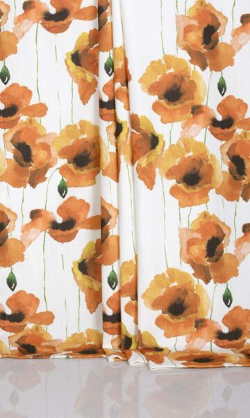 Grand watercolor sketches of poppies on slender stems – a rare contemporary take on a traditional floral theme! The spirited color scheme of white and apricot, and the magnified scaling make window treatments in this fabric an out-and-out choice for spacious rooms! ?Robust Orange? presents a clever alternative to floral wallpapers if you don?t want the garden theme centerstage all the time.