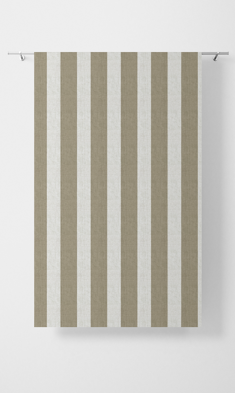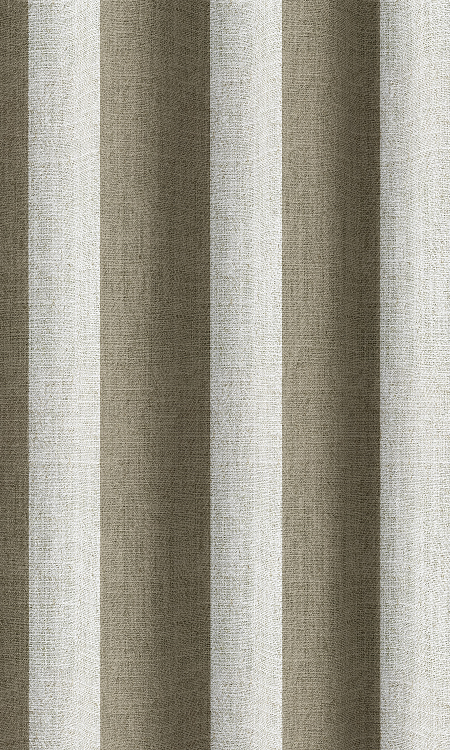 This texturally rich fabric is printed on a herringbone weave base and features a bold, repeating pattern of stripes designed to introduce understated elegance to your living space. With its neutral color palette of a warm brown and eggshell white, Rustic Charm promises to pair easily with other earth tones or similar shades that brim with stately elegance. Use it to create custom flat panel roman shades or minimalist grommet draperies in the style of a London townhouse or country estate. Its striped pattern promises to pair well with a medley of today’s trend-right and contemporary decorative styles.