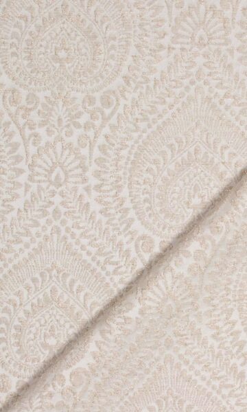 A damask-inspired heavily detailed pattern takes a quiet turn by expressing itself in raised textures and neutral hues. Samode is a timeless asset to any decor style as it can forward the quietness of modern homes as well as the embellishments of traditional settings, and mingle with any palette under the sun.