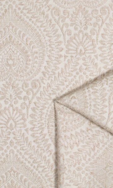 A damask-inspired heavily detailed pattern takes a quiet turn by expressing itself in raised textures and neutral hues. Samode is a timeless asset to any decor style as it can forward the quietness of modern homes as well as the embellishments of traditional settings, and mingle with any palette under the sun.