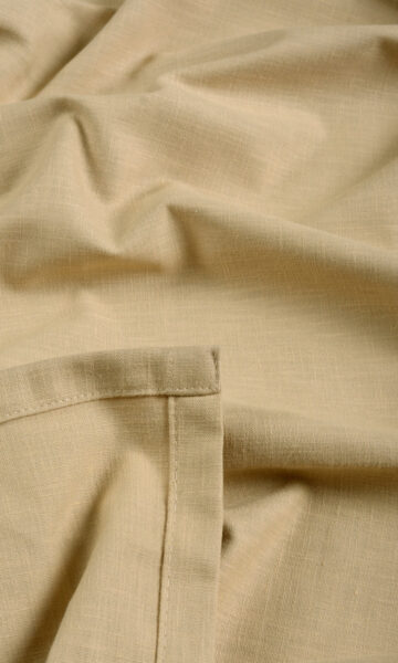 If you want a neutral-colored window treatment that can blend with any color palette, this wheatish beige fabric with sunny undertones might pique your aesthetic vision. Bringing you the goodness of nature enhanced with the quick-dry qualities of synthetic yarns, this cotton blend fabric promises a low-duty window dressing with adequate privacy and light control. Drapery styles like pinch pleats and roman shades styles like front-slats and European folds are recommended for this monochrome lovely.