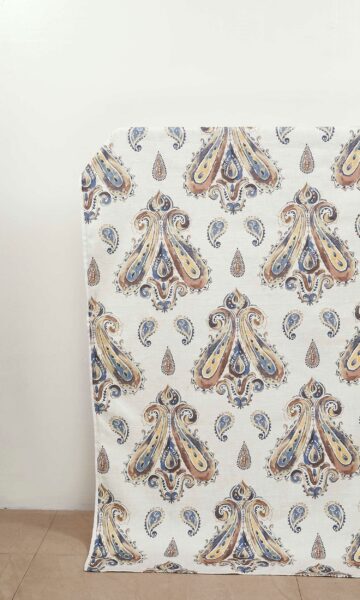 Serene and sublime with their graceful paisley print. Tasteful browns and sober blue tones on a subdued white background create a sophisticated effect that’s perfect for traditional as well as contemporary interiors. A perfect foil for wooden floors and pale walls!