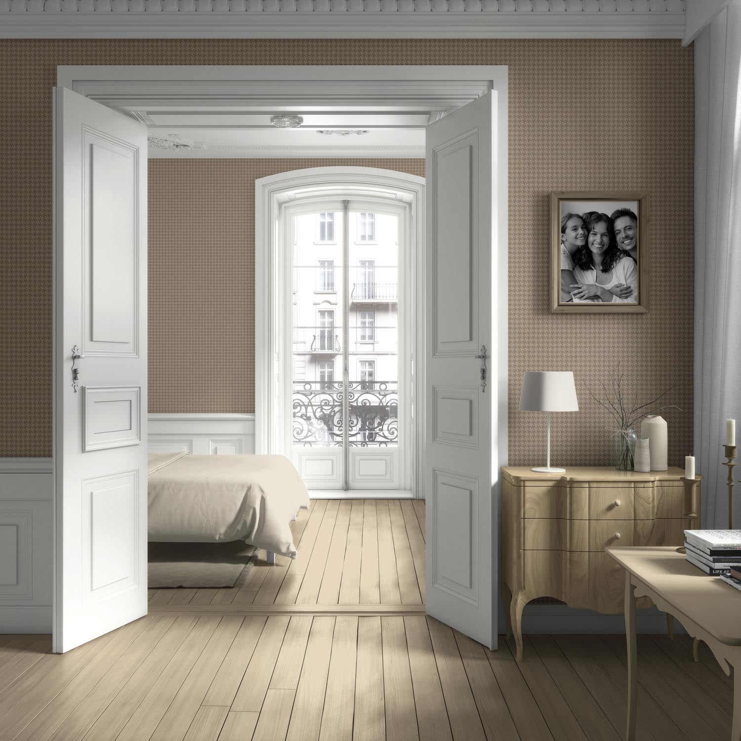FINISH: ‘Scenic Ride’ is in a textile-inspired, feather-textured, matte-lustre finish, which feels luxurious to the touch. Designed to absorb rather than reflect light, it lends your walls a soft depth and a refined, high-end feel.