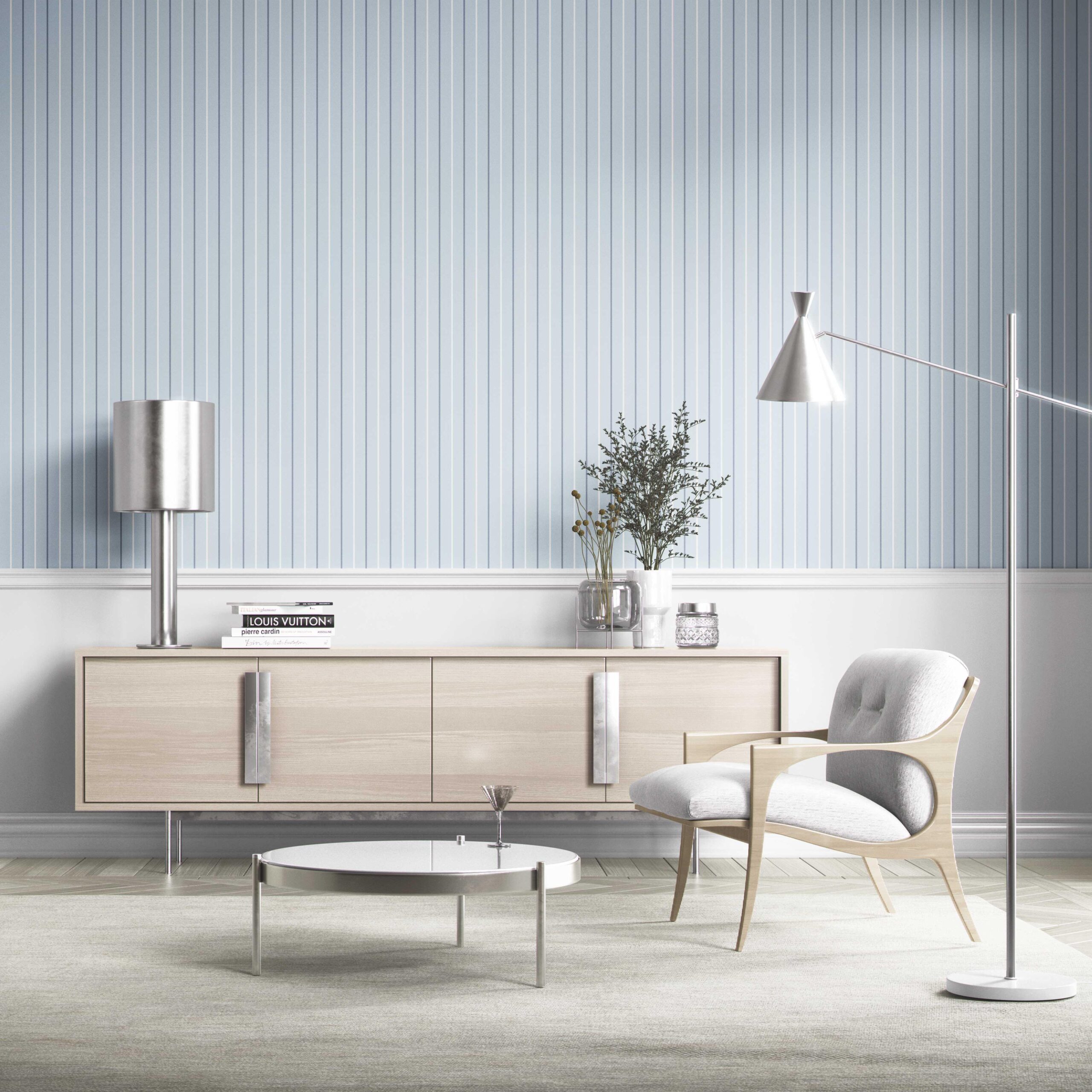 ‘Sea Nymph’ Geometric Striped Wallpaper (Blue)