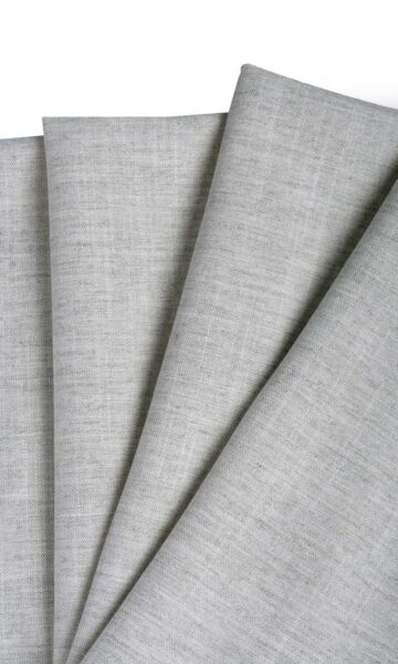 If you want window treatments that can keep up with any color palette, this sweet-looking smoky white fabric may live up to your expectations. The slubby textured finish offers a cozy vibe while the color comfortably partners with any hue. These soft, neutral curtains and roman shades can backdrop bright, bold, and patterned elements beautifully. The solid palette calls for styles that have a shapely constructs such as the pinch pleats drapes, relaxed roman shades, and front-slatted roman shades.