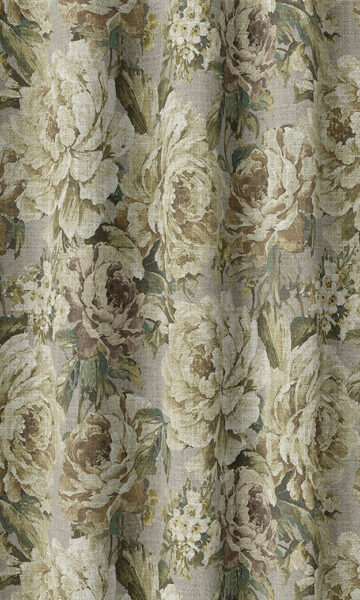 Invite the beauty of an English garden into your home with beautiful window treatments in this floral fabric. Off-white roses set in a mist grey backdrop can transport the serenity of a flower-laden meadow to any interior decor that seeks to cherish the immaculate beauty of nature. In urban locales, where every window exposes the eye to a concrete jungle, this floral beauty offers a glad break. The grand scaling renders a modern touch to an otherwise traditional motif and enables it to blend with every style of interior design.