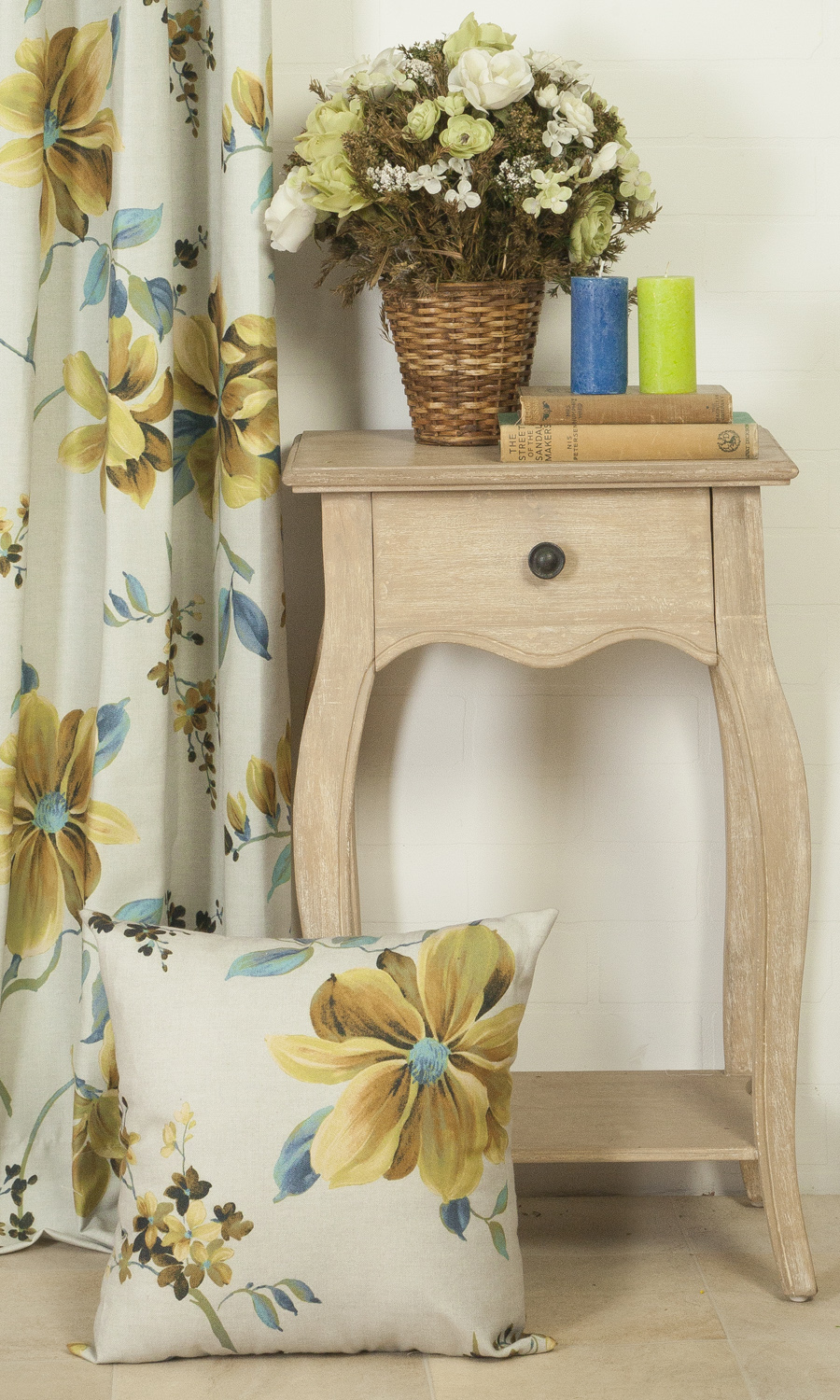 A modern twist on florals. Fresh and spring-like – on a stunning palette of yellows and blues. The floral design is definitely on the larger than life side while the colorway is gentle and soft. Perfectly and utterly elegant.