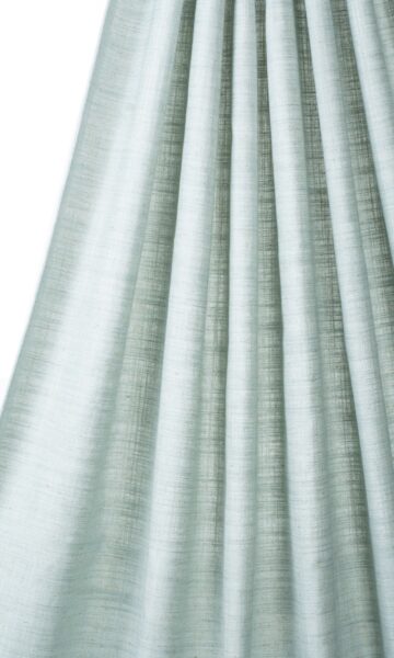 This lightweight powder blue beauty speaks aplenty with the softest of whispers. Its soft pastel hue is a distraction-free stage for the slubby linen texture to shine. Gently diffusing light, ‘Puffin’ promises to keep the home bright and airy without compromising privacy. Perfect for a coastal home to show its rustic leanings and sea-inspired palette, this semi-sheer linen maintains its size and shape intact by combining with polyester, making it ideal for humid locales and water-prone rooms like kitchens and bathrooms if left unlined.