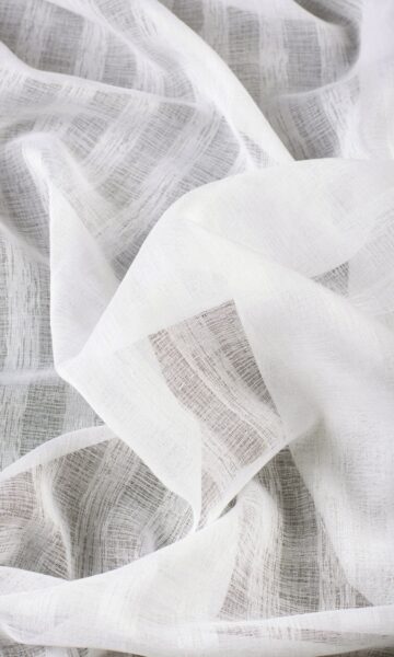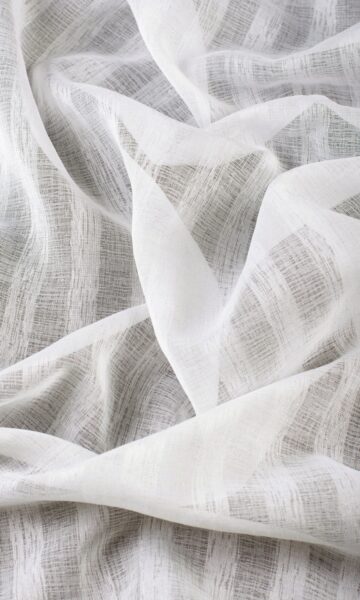 The epitome of simplicity and ethereal charm! A pure white sheer with a wee bit of detail hidden in its textured stripes, ‘Nivelle’ offers the dreamy elegance that sits right in a coastal home, a country cottage and a modern condo with equal ease. Light, breathable and timelessly elegant, this sheer is characterized by a calm, uncluttered visual appeal and guarantees privacy during the day while welcoming light.