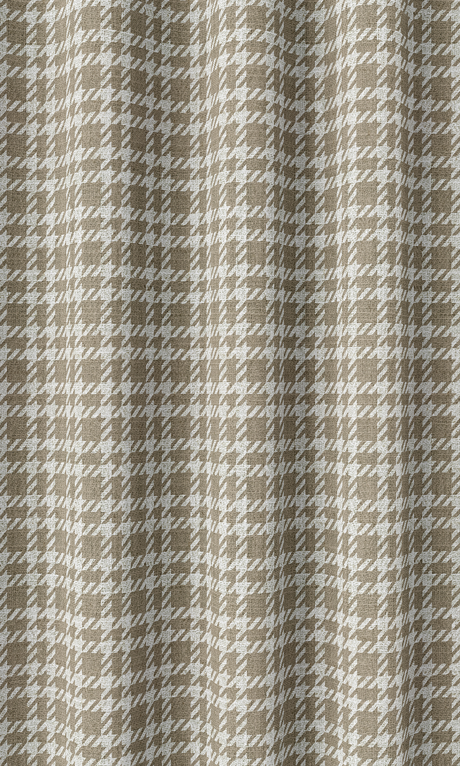 Featuring a neutral color palette of cedar brown and eggshell white, this lovely fabric promises to pair well with virtually any other hue, ranging from neutrals to jewel tones and pastels. While its all-over houndstooth pattern evokes traditional style, it’s equally at home in transitional or contemporary spaces. Plus, the fabric’s graceful drape makes it suited for various applications such as flat panel roman shades or drapery in any heading style.?
