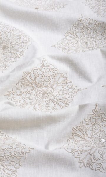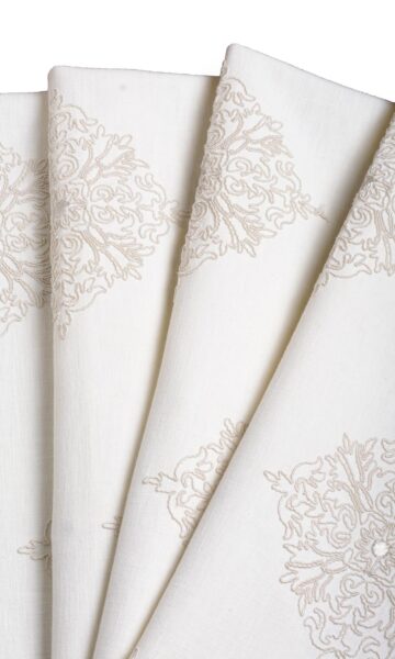 ‘Sesame Seed’ Poly-Linen Embroidered Custom Drapes (White/ Cream)