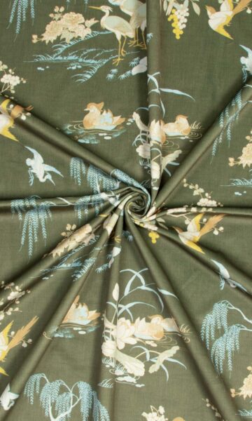 If you love earthy tones and nature themes, here’s a wonderful way to flaunt it. This splurge-worthy olive green velvet is for those who love patterns but are not overwhelmed by statement window treatments. Inspired by the traditional chinoiserie and toile motifs, the candid moments of our winged friends have been captured in this velvet print. With an army of indoor plants around, you can easily mimic a jungle and dine al fresco right within your home.